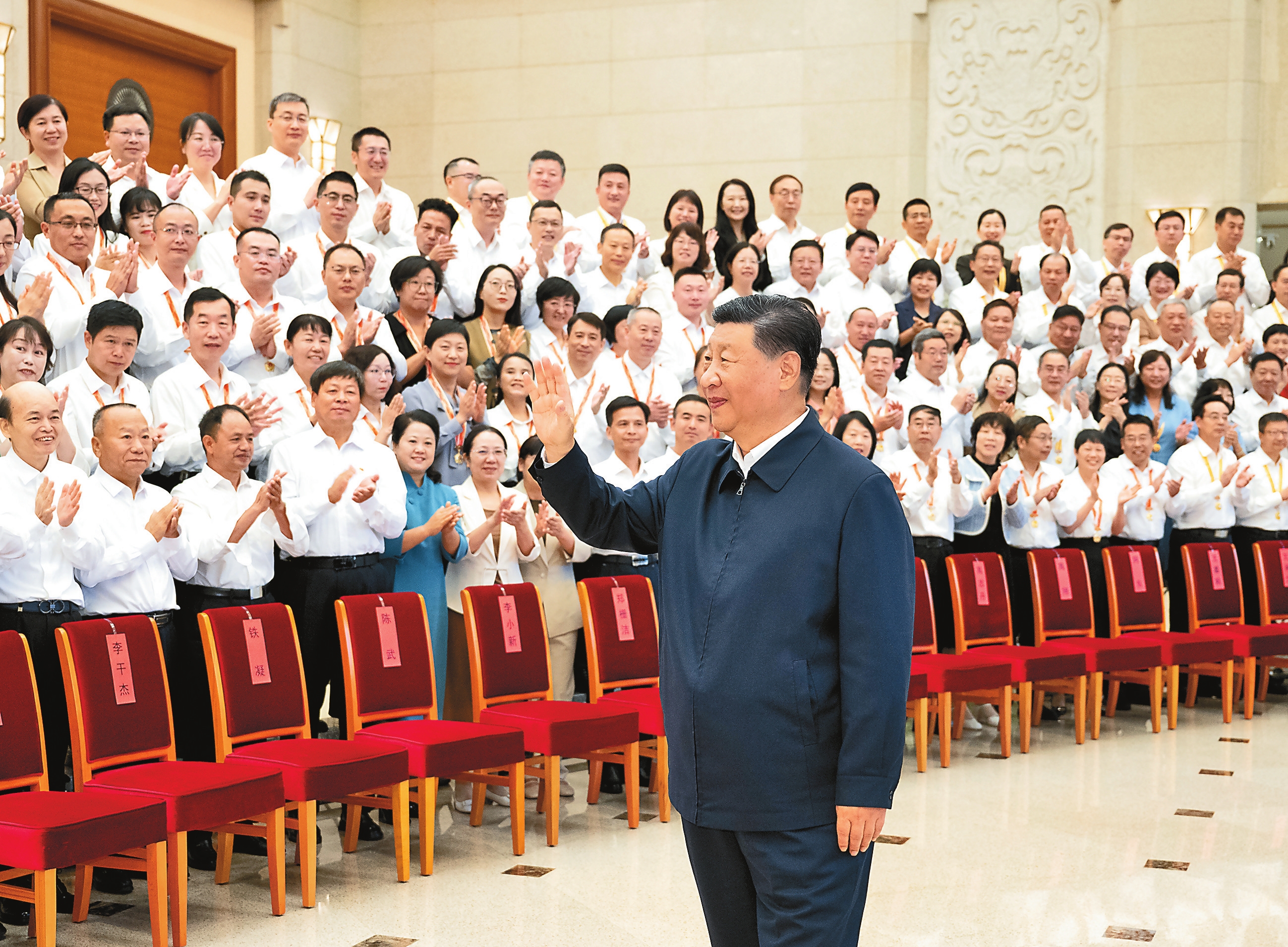 九月九日,党和国家领导人习近平、李强、蔡奇、丁薛祥等在北京接见参加庆祝第四十个教师节暨全国教育系统先进集体和先进个人表彰活动代表。 新华社记者 李涛 摄