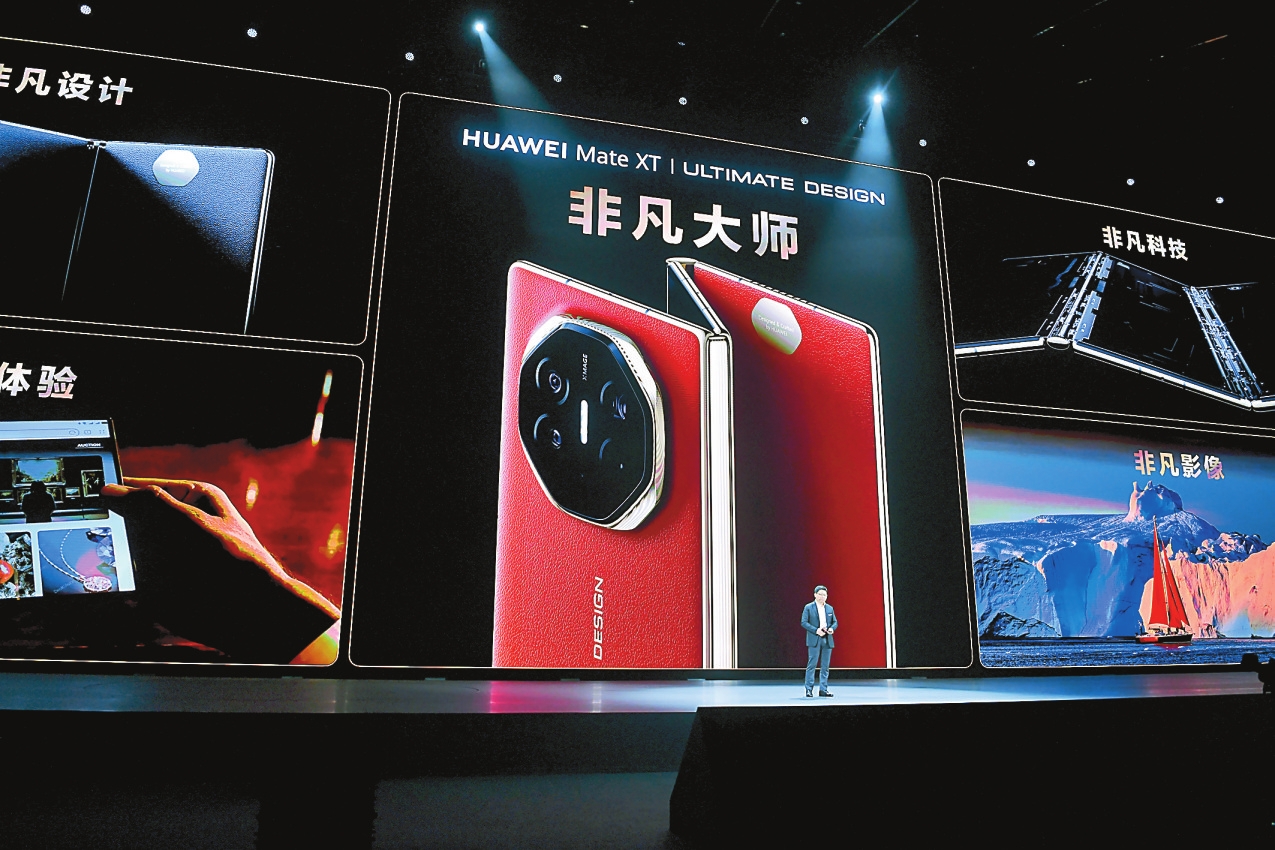 图为当日,华为发布Mate XT非凡大师系列新品。新华社记者 梁旭 摄
