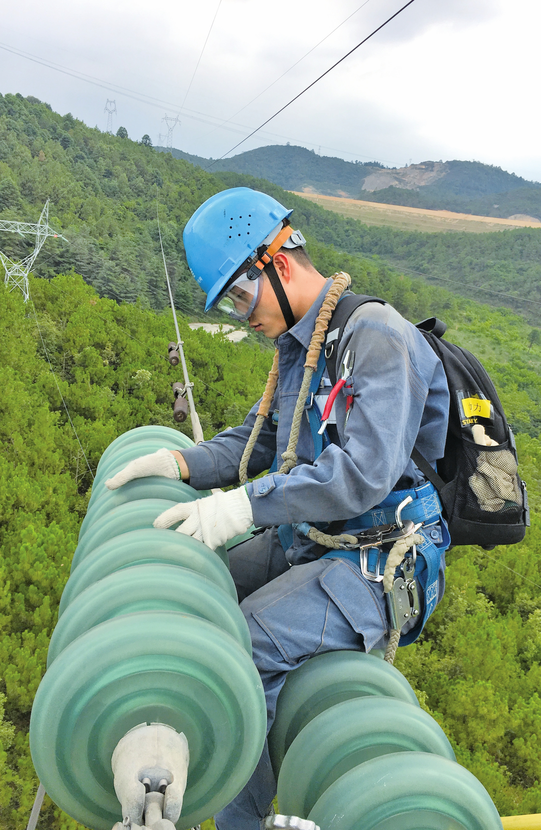 2016年,刚参加工作不久的帅力就迎来了职业生涯中的第一个大挑战——验收全国首个省内直流输电线路工程±500千伏永富直流线路。“时间紧,任务重,跨昆明、楚雄等地,那时内心很忐忑。”作为走线验收人员,他克服重重困难,共完成60多档近50公里线路验收工作,最多的时候一天要在导线上走近4公里。