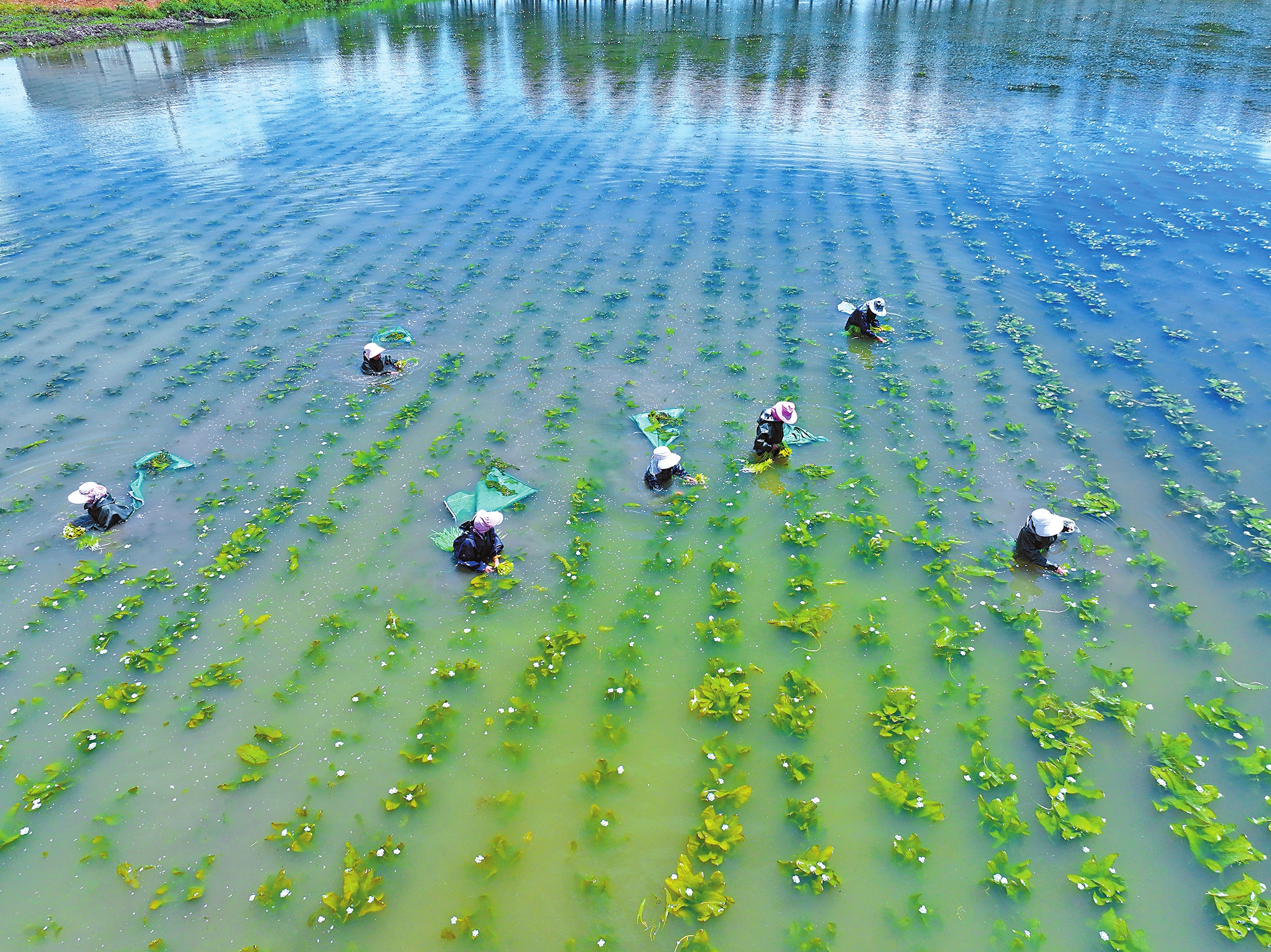 今年,洱源县试种的300多亩深水海菜花迎来丰收,采收1次产量可达5吨,比浅水区种植翻了一番。这标志着洱源县已实现海菜花深水种植,未来其经济价值和产业潜力将进一步提升。本报记者 李文诗