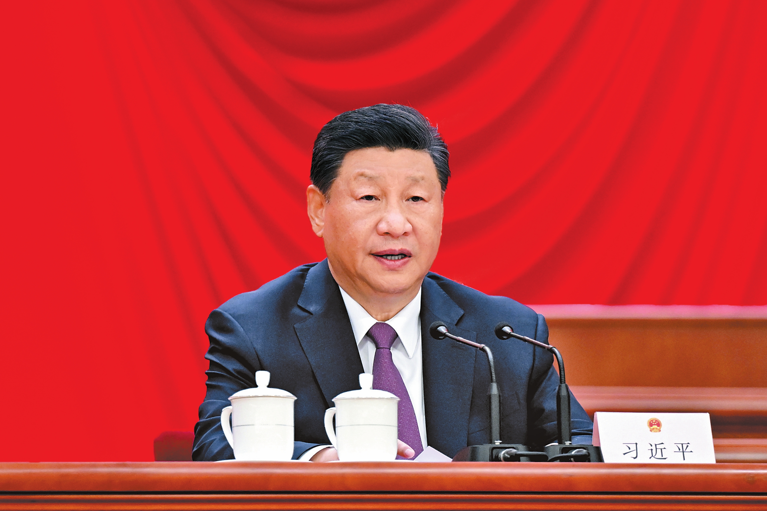 习近平指出,要充分发挥人大在立法工作中的主导作用。坚持和完善党委领导、人大主导、政府依托、各方参与的立法工作格局,加强重点领域、新兴领域、涉外领域立法,提高立法质量,不断完善中国特色社会主义法律体系。加快完善体现权利公平、机会公平、规则公平的法律制度,保障公民各项权利得到有效落实。
