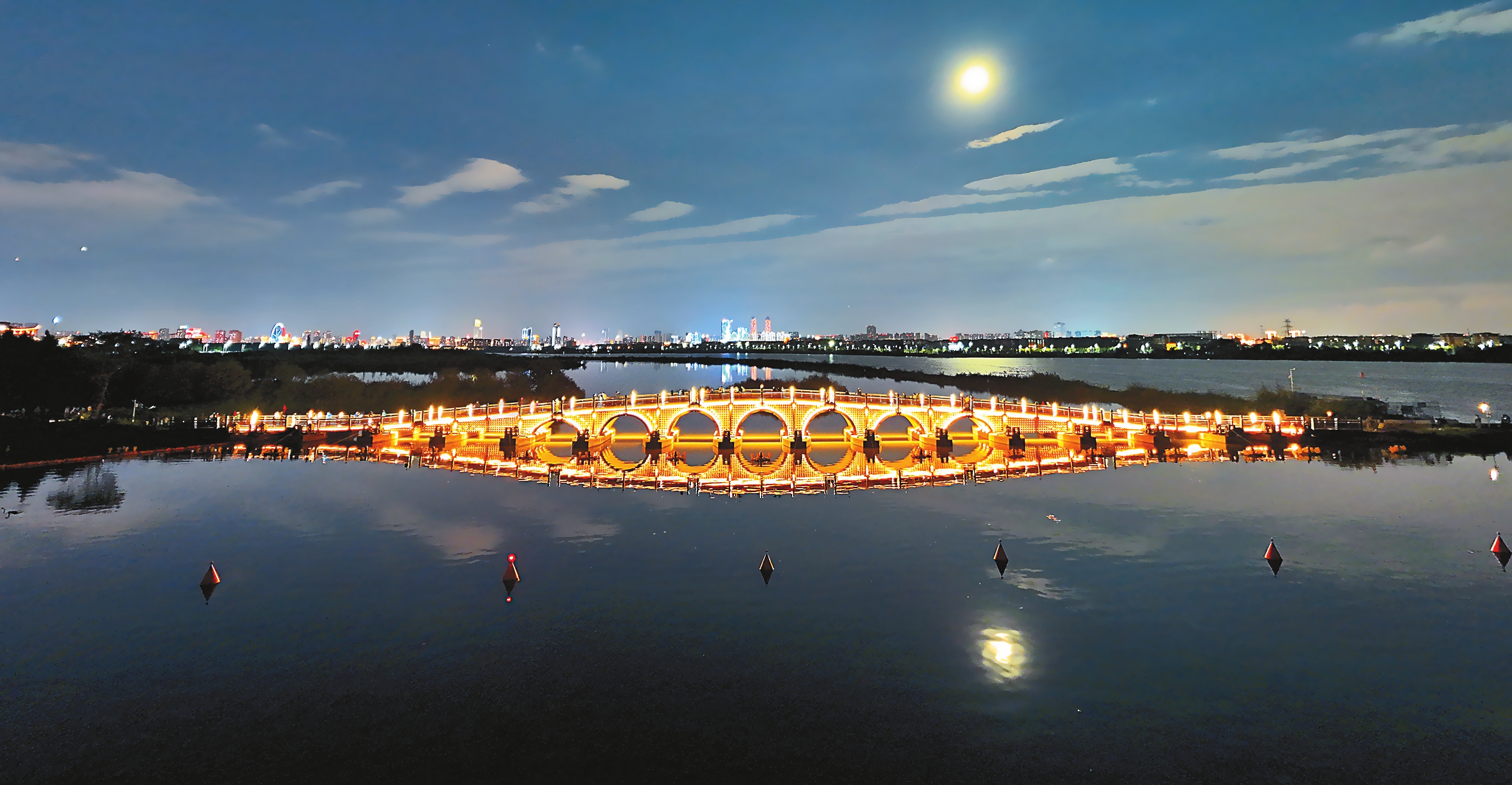 昆明东风坝七孔桥流光溢彩。见习记者 高吴双 摄