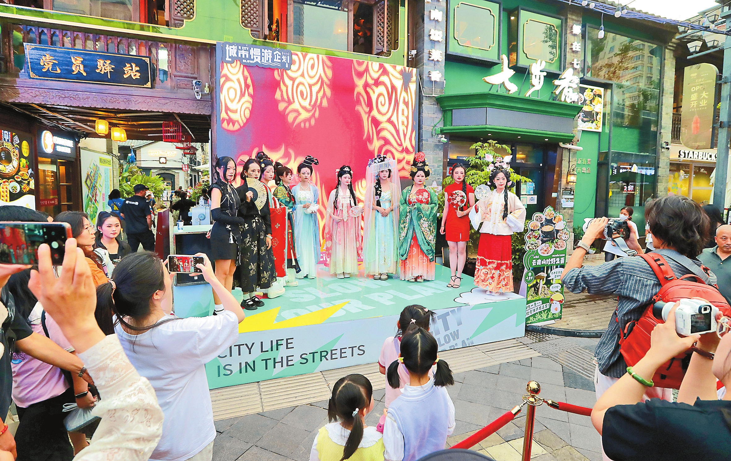 昆明市南强街巷国风服装造型走秀吸引市民游客。见习记者 高吴双 摄