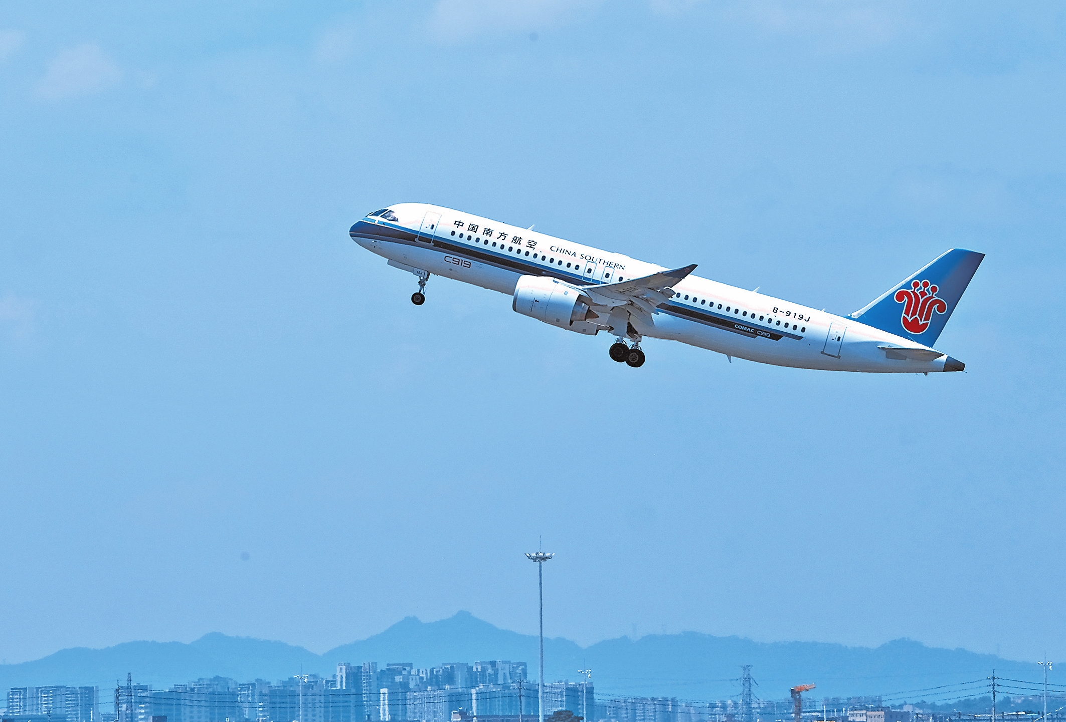 9月19日12时11分,机头显著位置标记着“C919”字样的中国南方航空公司CZ3539航班从广州白云机场腾空而起,满载乘客飞向1000多公里外的上海虹桥机场,于14时3分顺利降落。