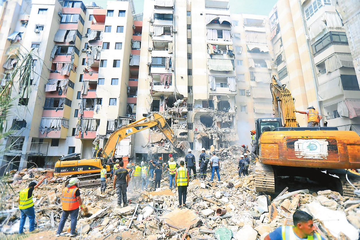 9月21日,救援人员在黎巴嫩贝鲁特的袭击现场工作。