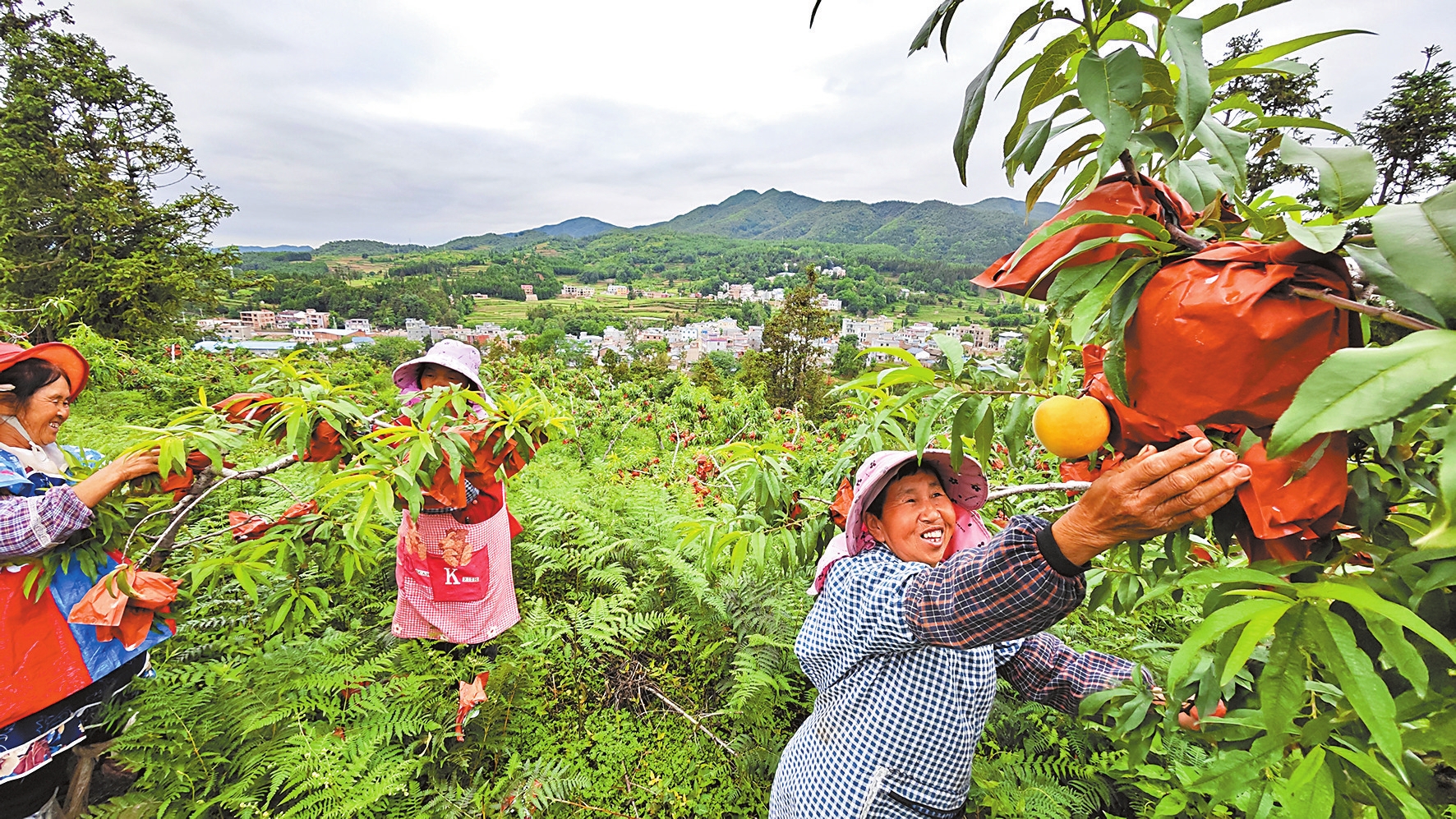 金秋时节,走进富源县大河镇白马村陶源溪谷白马生态庄园,千亩黄桃刚采摘结束,空气中仍旧果香四溢,接下来的一段时间是果树养护的关键时期,一群来自附近村庄的女工,每天都在果园里忙碌。