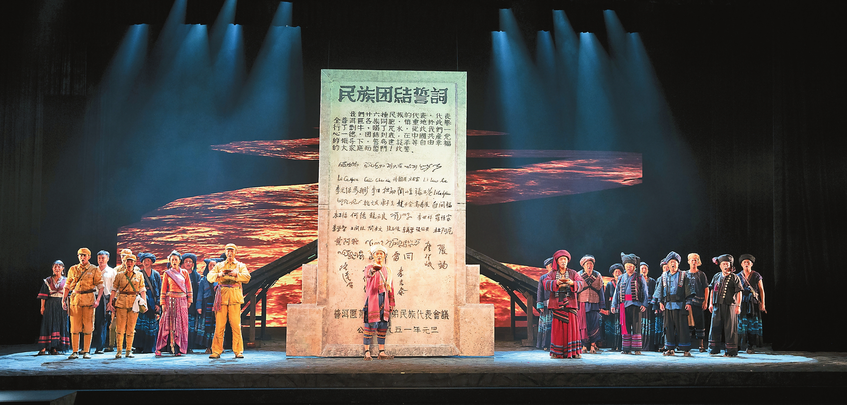 据介绍,话剧《澜沧水长》融合了诗意与史诗的双重美感。澜沧江的象征意义贯穿全剧,通过充满激情的民族歌舞和富有象征性的仪式场景,打造出震撼人心的视听体验。
