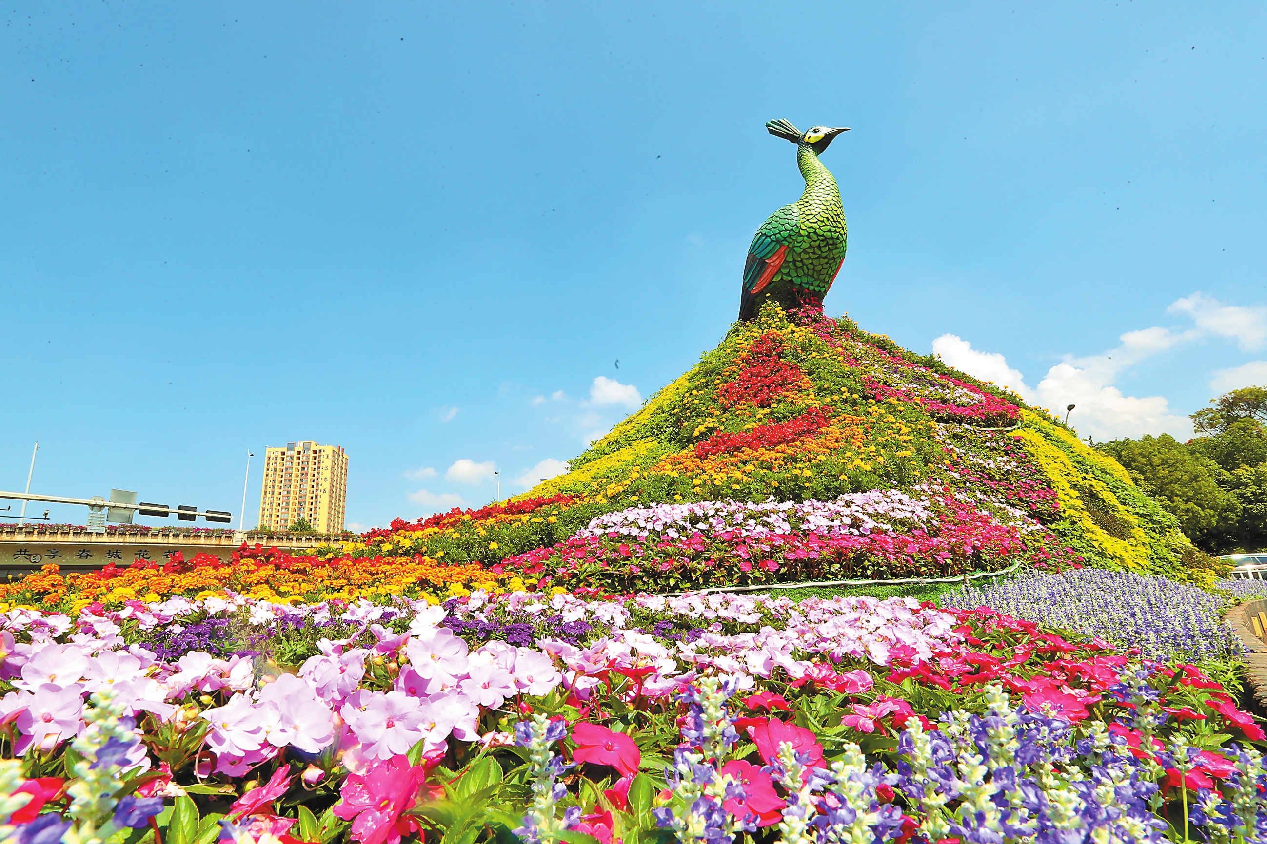 上图:呈贡区斗南街道“孔雀仙子”花坛。