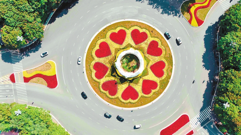 近日,昆明市主城区重要城市道路、城市广场、步行街区等场所异彩纷呈,独具特色的立体花坛、五彩斑斓的花海,把城市装扮得分外美丽,洋溢着喜迎中华人民共和国成立75周年的浓厚氛围。