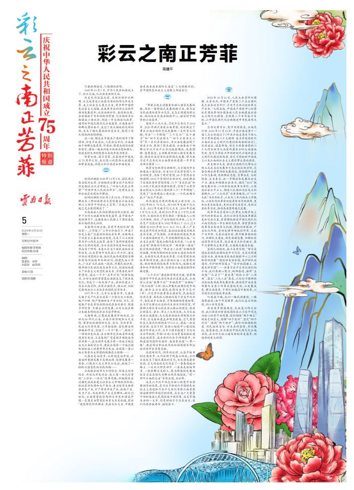 新景如画,满目芳菲。在喜迎新中国成立75周年之际,我们衷心祝愿伟大祖国更加繁荣昌盛,祝愿七彩云南更加幸福美丽。