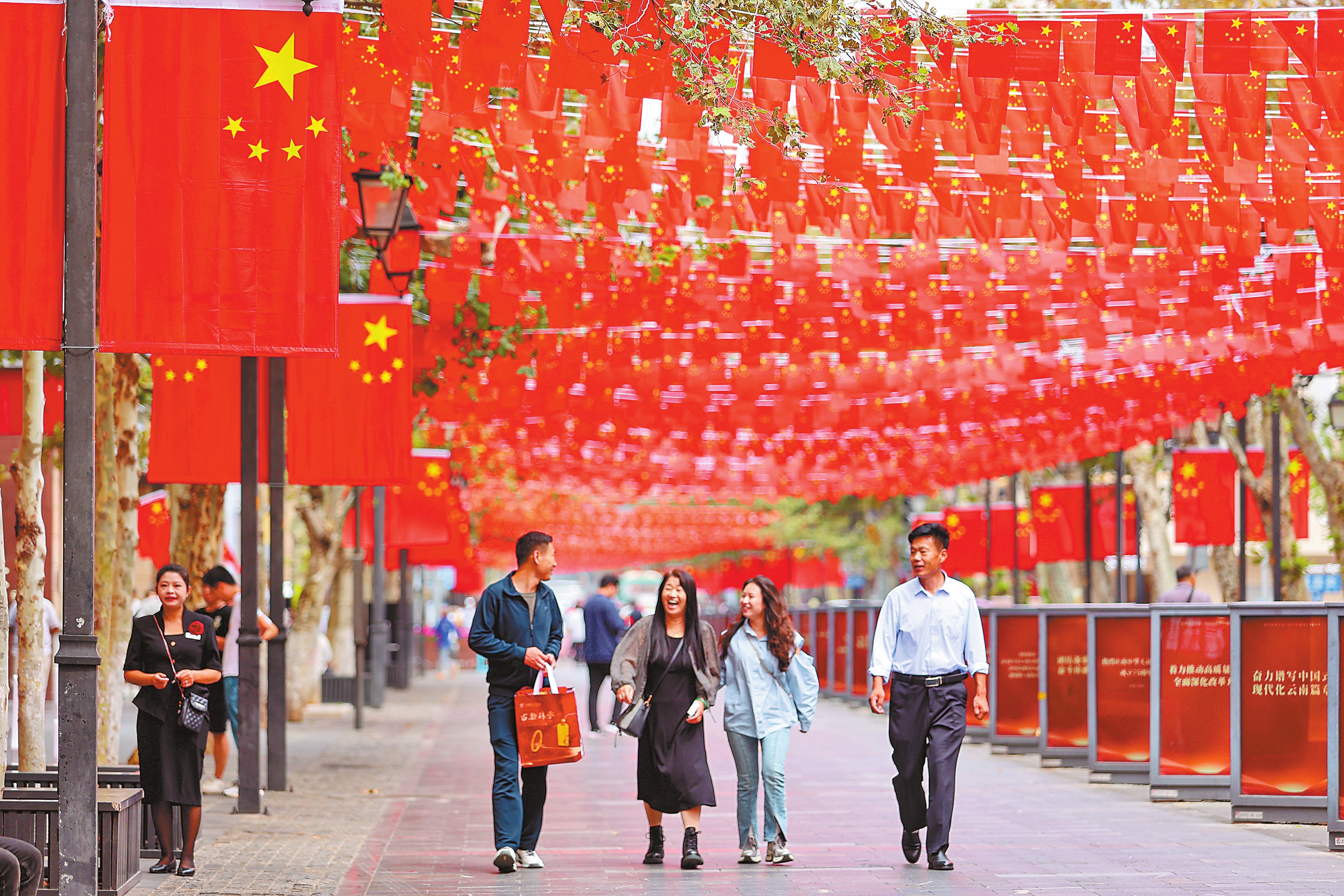 连日来,昆明街头国旗飘扬、花团锦簇,大街小巷沐浴在“中国红”之中,节日的气息扑面而来。人们以各种方式祝福祖国、欢度国庆。