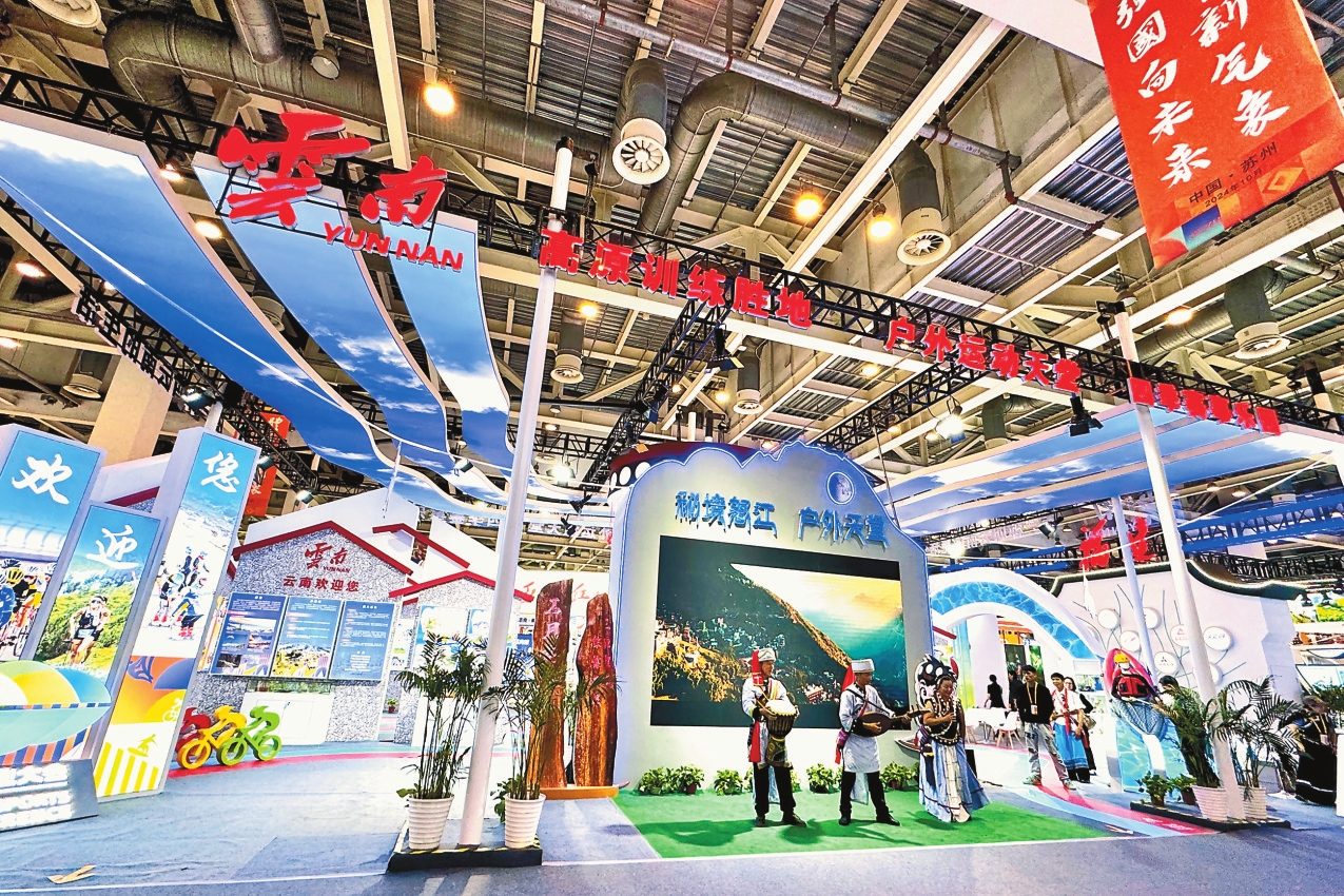 今年的“两个博览会”设立4大展区,全面展示全国各省(区、市)体育文化、体育旅游发展成就。其中,云南展台以怒江傈僳族自治州民族体育和文化元素为主题,集中展示了云南省今年选送的20个体育旅游精品项目、20个体育文化优秀项目和20条经典徒步线路。