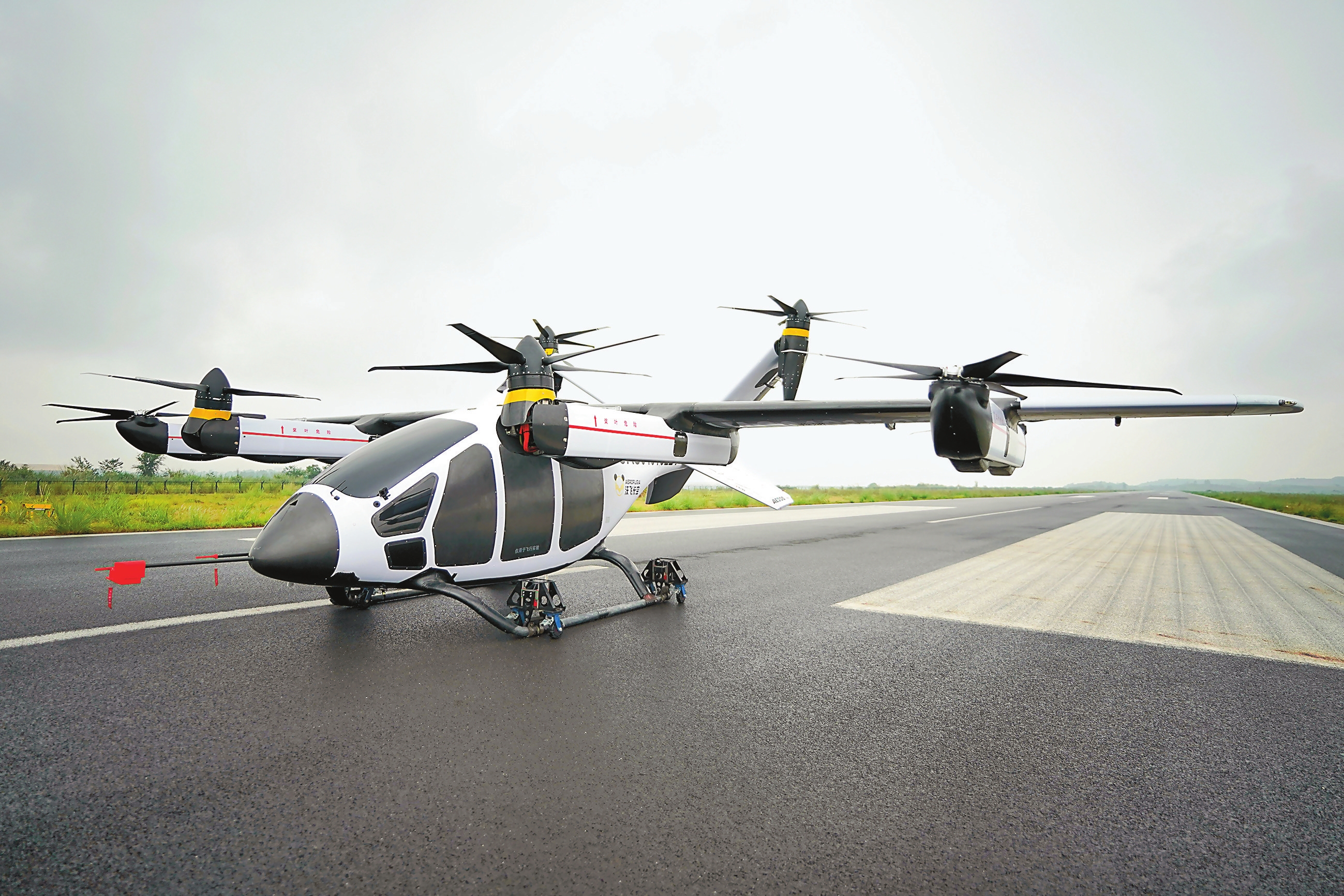 10月12日,沃飞长空AE200电动垂直起降航空器(eVTOL)在成都淮州机场进行了一次全倾转飞行试验。