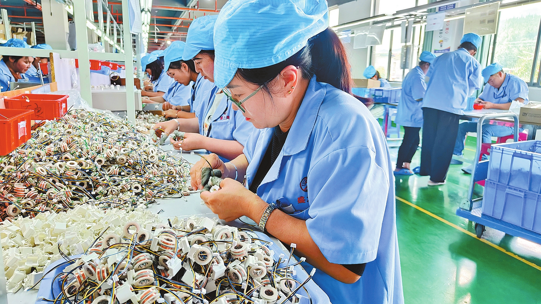 栾春琼在以礼工业园区的盛之发机电会泽有限公司打工半年多,每个月能拿到4000多元工资。盛之发机电会泽有限公司负责人介绍,该公司于2023年7月入驻以礼工业园区,现有员工800人,月平均工资3500元,公司通过开设社工之家为企业员工提供孩子托管、课后辅导等服务。此外,公司还根据员工需求,为他们提供免费午餐、茶水等暖心服务,让员工感受到家的温暖。