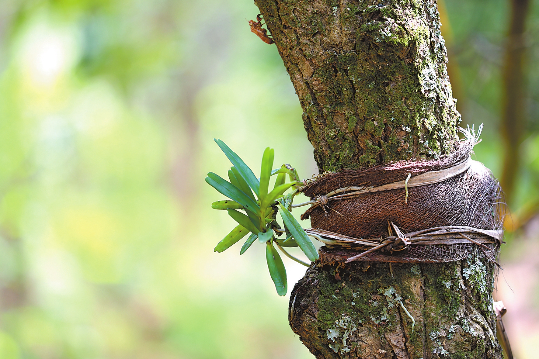 本报讯(记者 李苏榕 通讯员 李厚宽 白详) 近日,来自林草部门、科研院所和高校的林草专家一行来到云南元江国家级自然保护区深处的云南火焰兰原生境地,利用采集自附近山林的新鲜苔藓、棕树皮等天然原材料,将一株精心培育的云南火焰兰幼苗固定到合适的壳斗科植物上,开展新一轮的云南火焰兰野外回归活动。