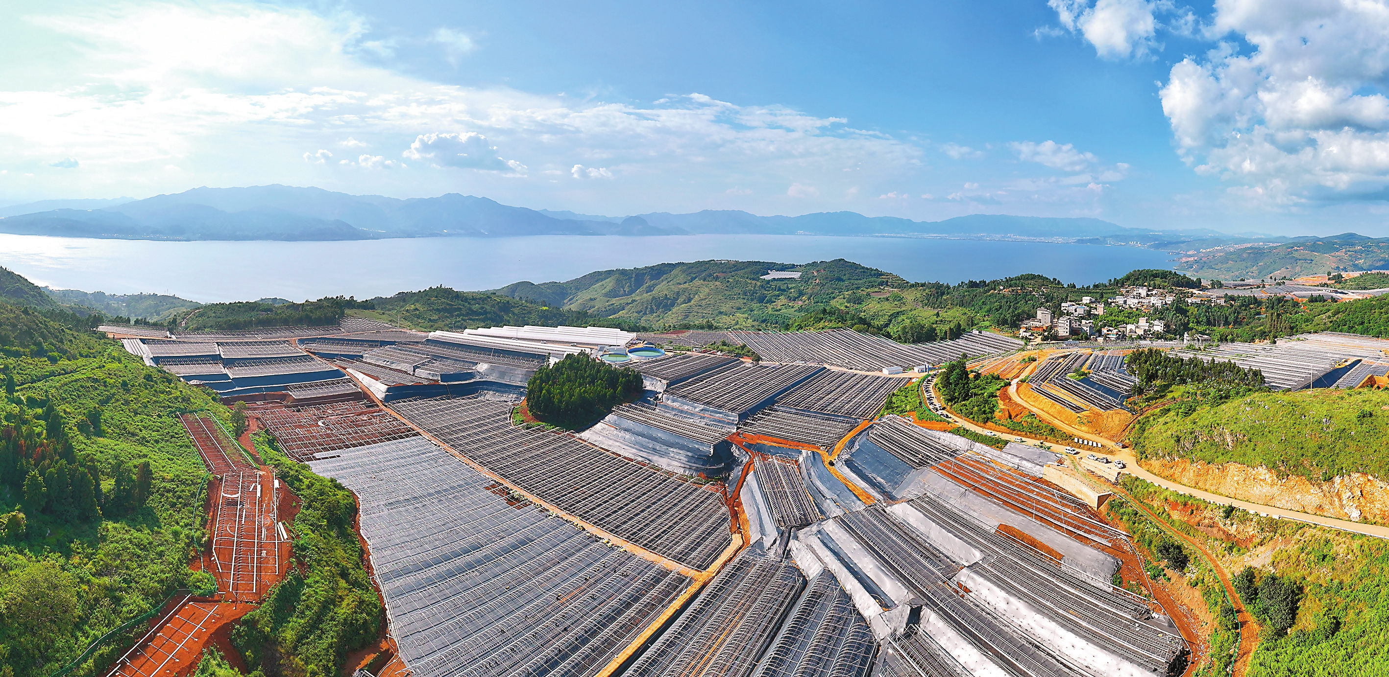 近年来,澄江市以抚仙湖保护统领经济社会发展,坚持用工业化理念谋划农业发展,多措并举推进基地建设,打造了一批可复制、可推广的示范亮点,推进了乡村振兴高质量发展。目前,澄江市已建成现代农业基地649个,面积9.2万亩。图为澄江市数字化设施农业生态蓝莓项目一景。 本报通讯员 曾永洪 摄