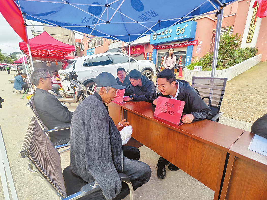9月12日上午10时,陆良县龙海乡核桃村村民邵柱荣来到村集市的接访点,反映遇到的问题。龙海乡党委书记徐良亮耐心聆听、认真记录,并给予及时处理和答复。