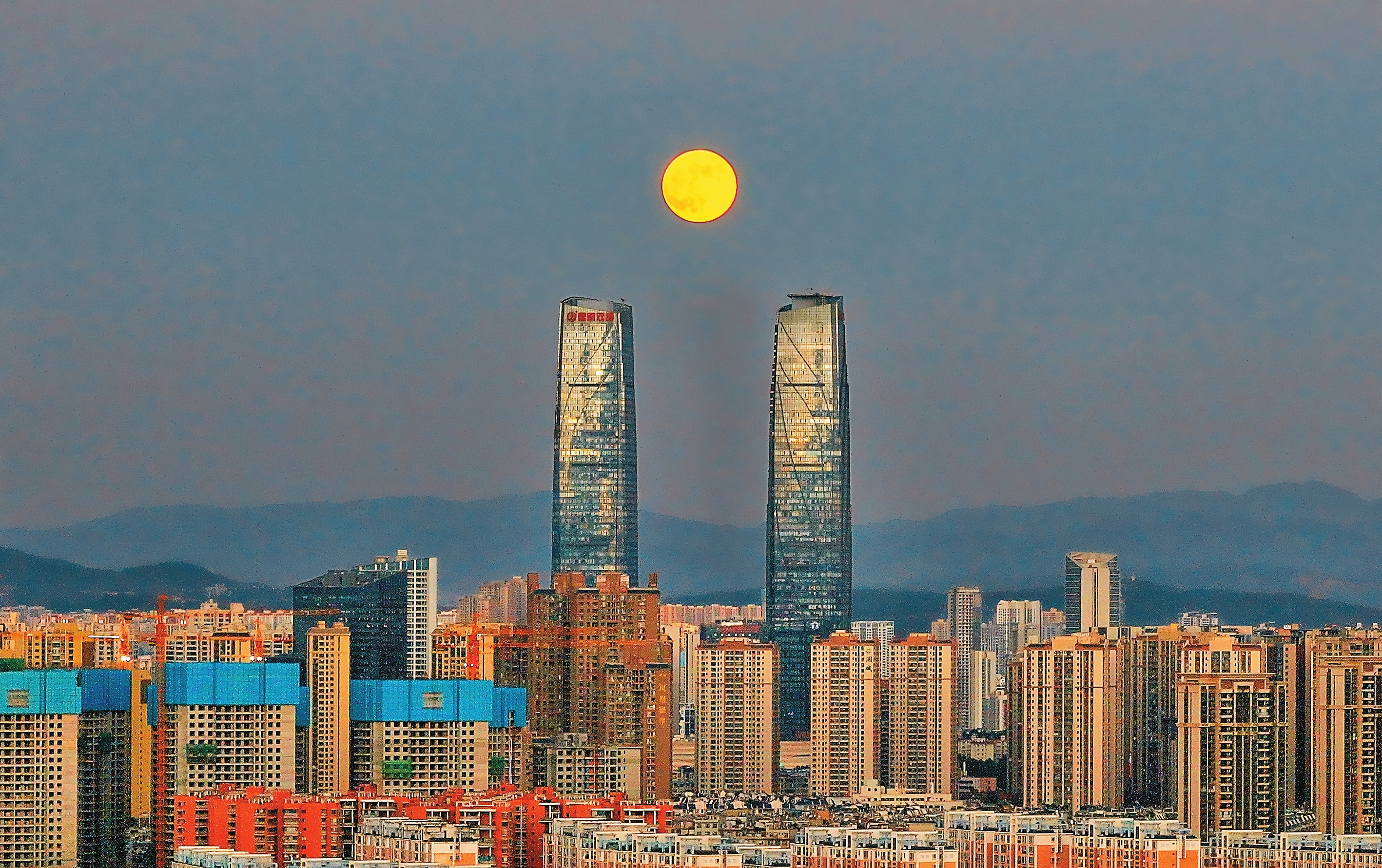10月17日,一轮满月从昆明地平线缓缓升起,与城市同框景象美不胜收。这是今年满月时刻与月球近地点时刻最接近的一次,两者相差不到11个小时,这轮满月也成为2024年可观测的最大满月,是一轮“超级月亮”。