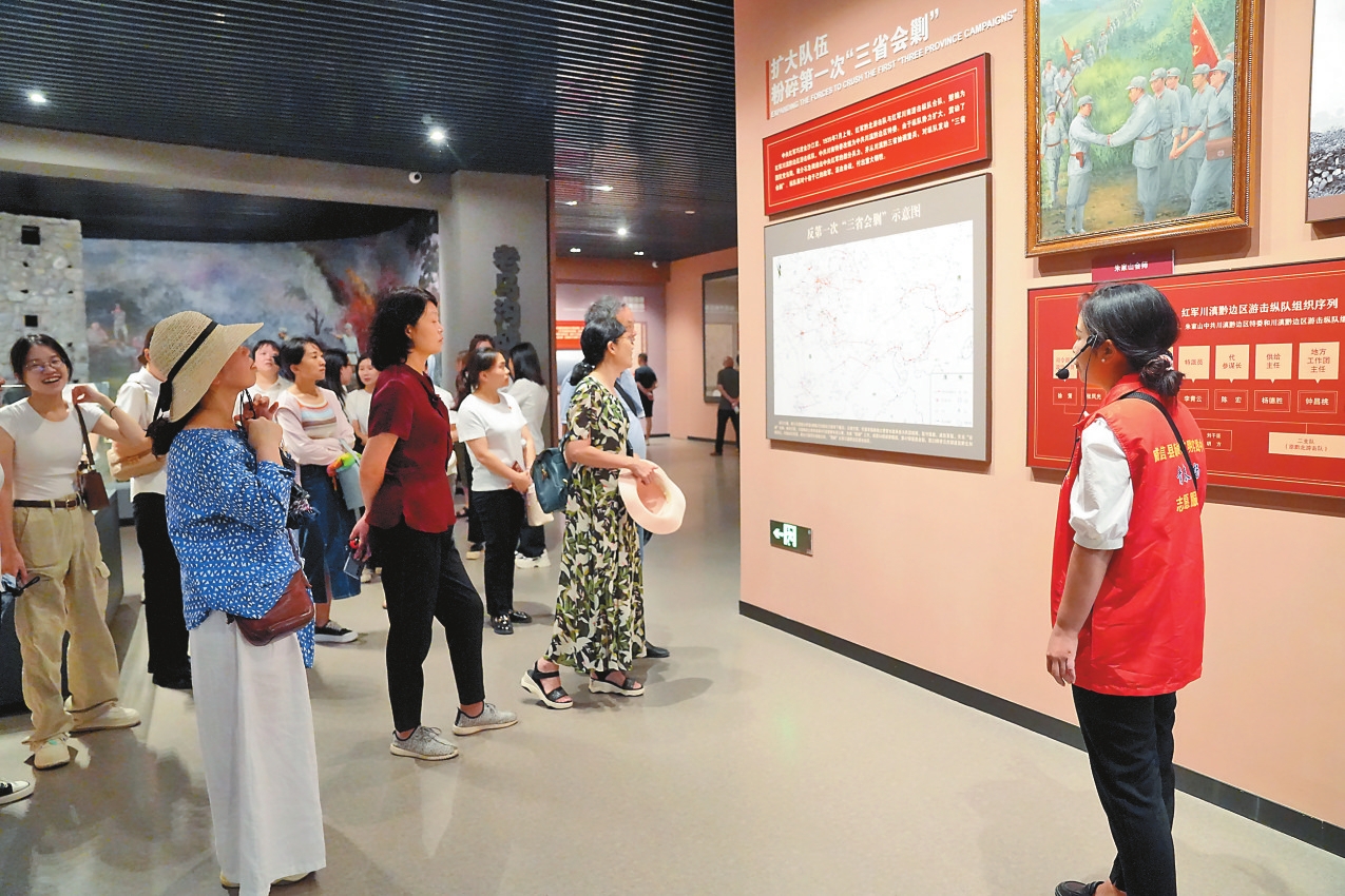 用活红色文化资源,讲好“扎西会议”故事。作为我省红色文化旅游的一张响亮名片,威信县在推进红色文化旅游产业高质量发展的过程中,以扎西会议纪念馆为核心,采取优化布展方式、丰富展区内容、重塑布展空间等方式,将铸牢中华民族共同体意识融入纪念馆数字化布展改造提升的全过程,重点打造“三园五馆两道”红色教育矩阵,以红色文化赋能民族团结进步。