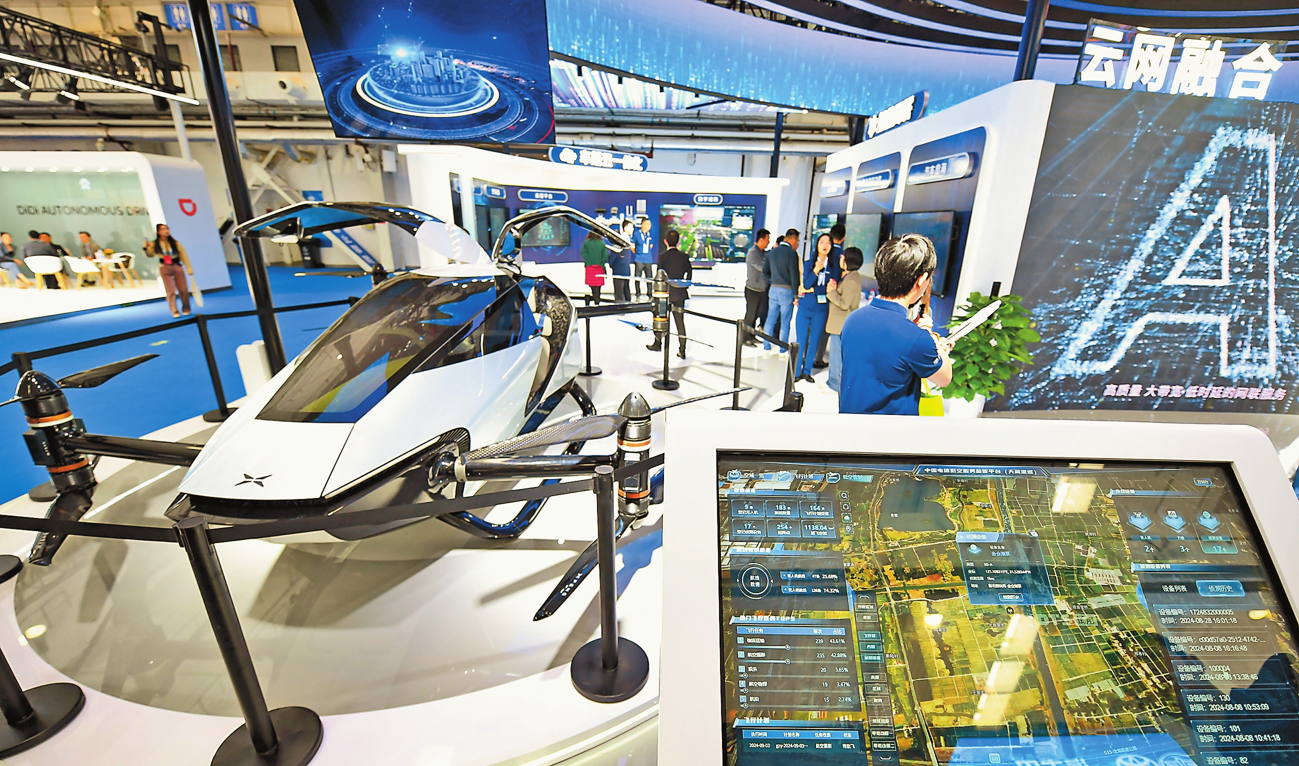 上图为中国电信展台的“低空服务监管平台”展示项目。