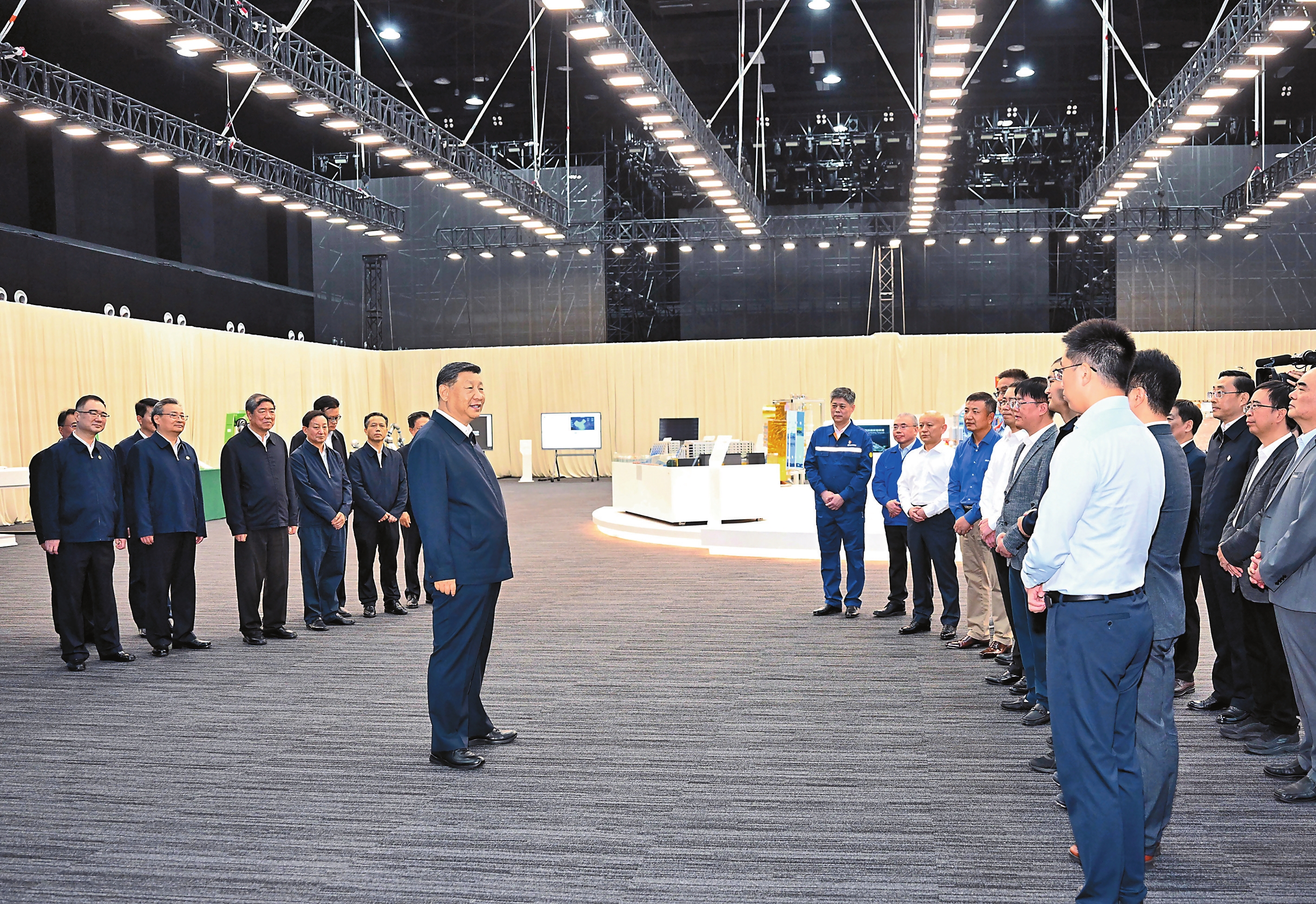随后,习近平来到合肥滨湖科学城,察看安徽省重大科技创新成果集中展示,听取当地推进科技体制机制创新、加快科技成果转化等情况介绍,同现场科研人员和企业负责人亲切交流。他在智能网联汽车、新一代信息技术、新能源、人工智能、生命健康等高新科技产品前一一驻足,仔细察看,不时表达赞赏之意。习近平指出,推进中国式现代化,科学技术要打头阵,科技创新是必由之路。高新技术是讨不来、要不来的,必须加快实现高水平科技自立自强。科研工作者是推进中国式现代化的骨干,要拿出“人生能有几回搏”的劲头,放开手脚创新创造,为建设科技强国奉献才智、写下精彩篇章。