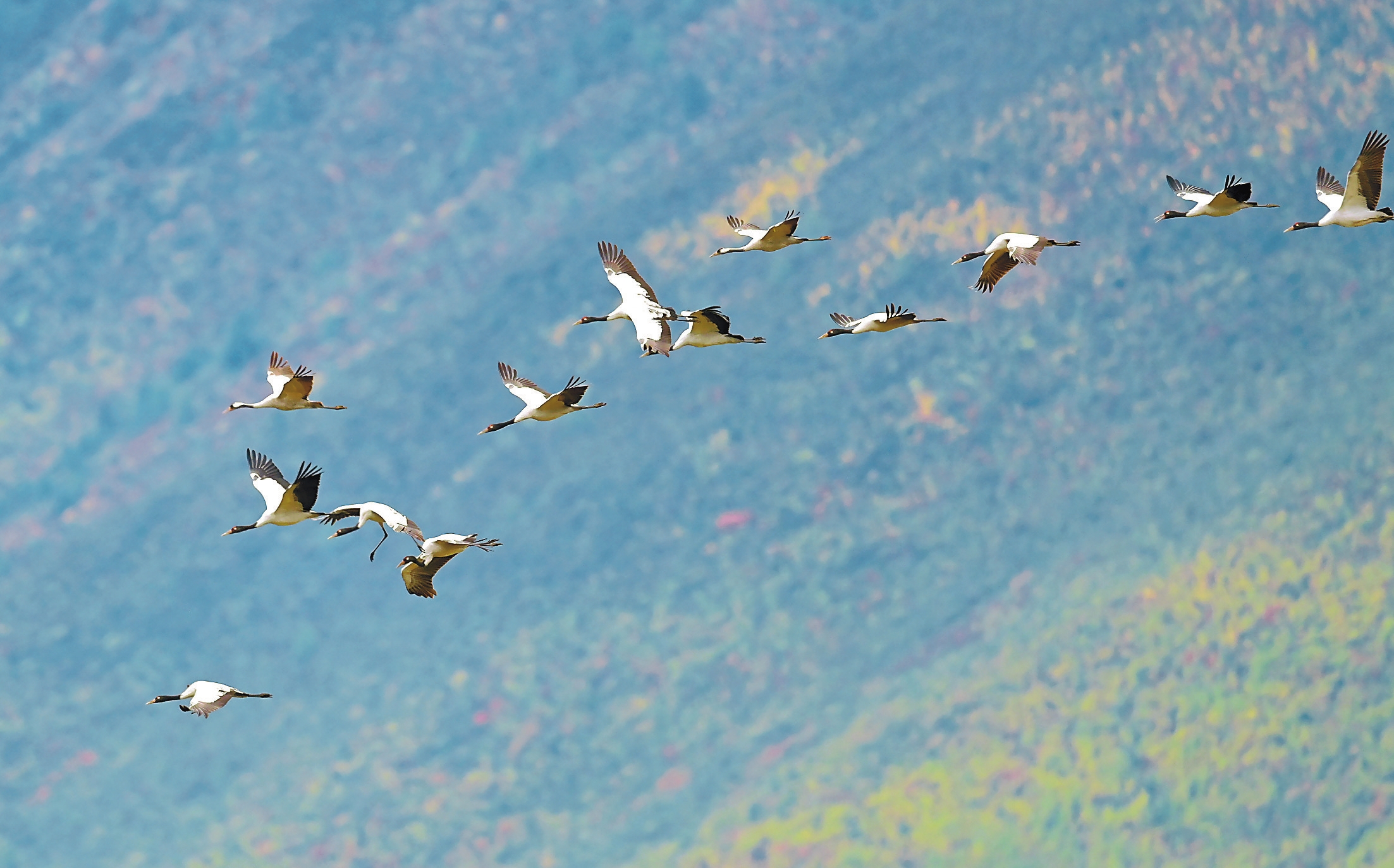 本报讯(记者 彭少杰 通讯员 赵旭燕 陈志明) 近日,纳帕海省级自然保护区管护局工作人员在辖区内监测到34只黑颈鹤,这是今年首批飞抵香格里拉的越冬黑颈鹤,与黑颈鹤同期飞抵的还有2只灰鹤、61只黑鹳。