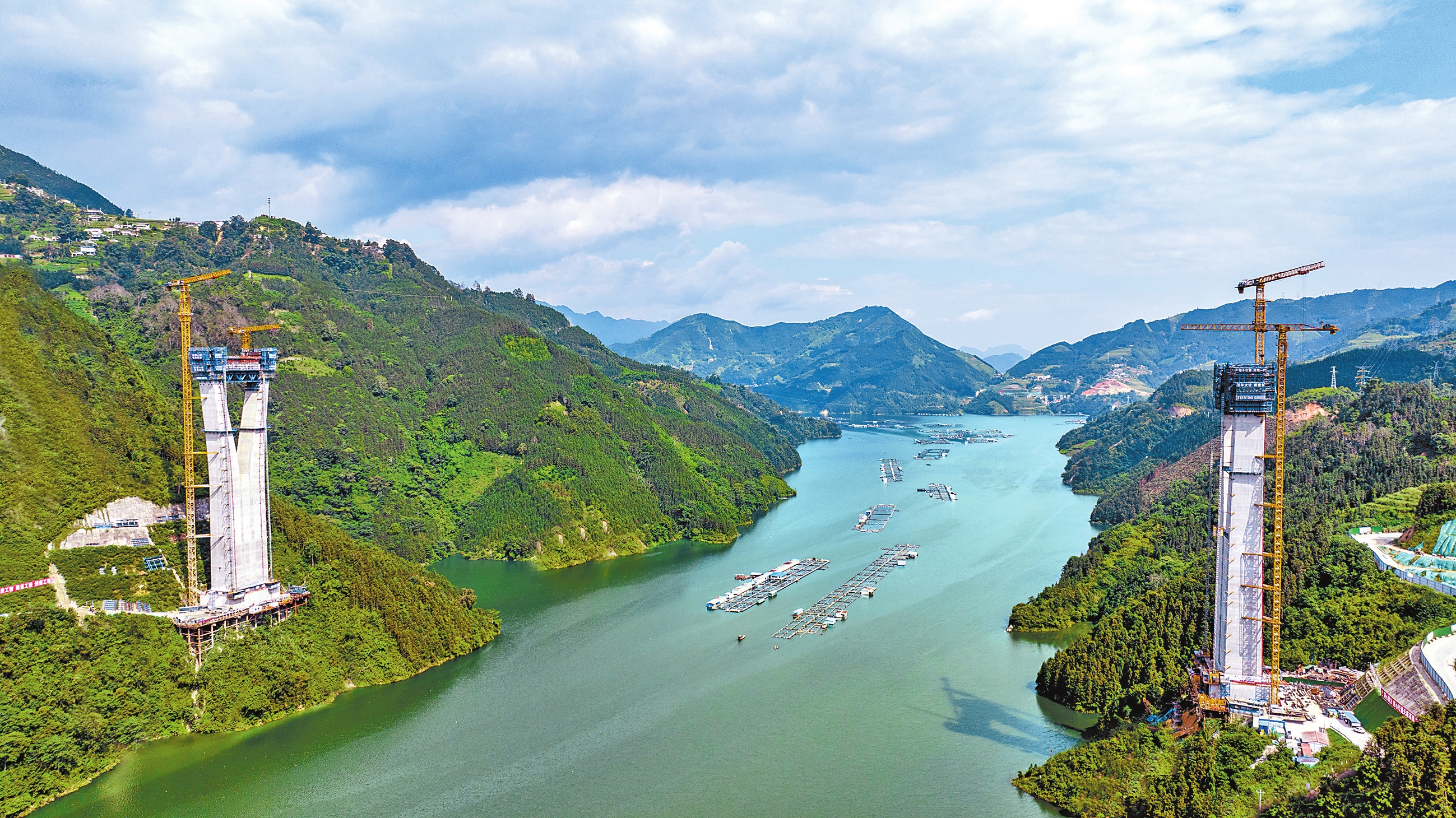 连日来,天保至猴桥高速公路重点控制性工程马鹿塘(水库)特大桥正加紧建设。该项目由中交第二航务工程局有限公司承建,位于麻栗坡县天保镇南温河境内,也是文天高速公路文山至天保段的重点控制性工程。特大桥桥址区属于构造侵蚀中低山地貌,地形起伏大,且位于库区岸坡较陡峭地带,大桥横跨(南温河)马鹿塘水库,全长1000.5米,主跨480米。本报记者 黄鹏 通讯员 熊平祥 赵仕庚 摄