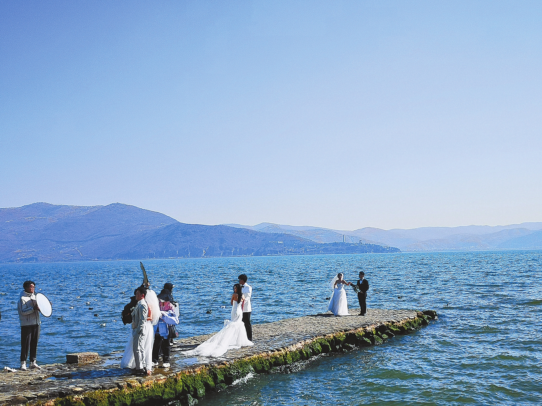 在全长129公里的洱海生态廊道上,一对对新人或对另一半深情表白,或拍一组唯美婚纱照,抑或是举行一场目的地婚礼,一起许下山盟海誓、见证海枯石烂……这样的场景每天都在大理上演。