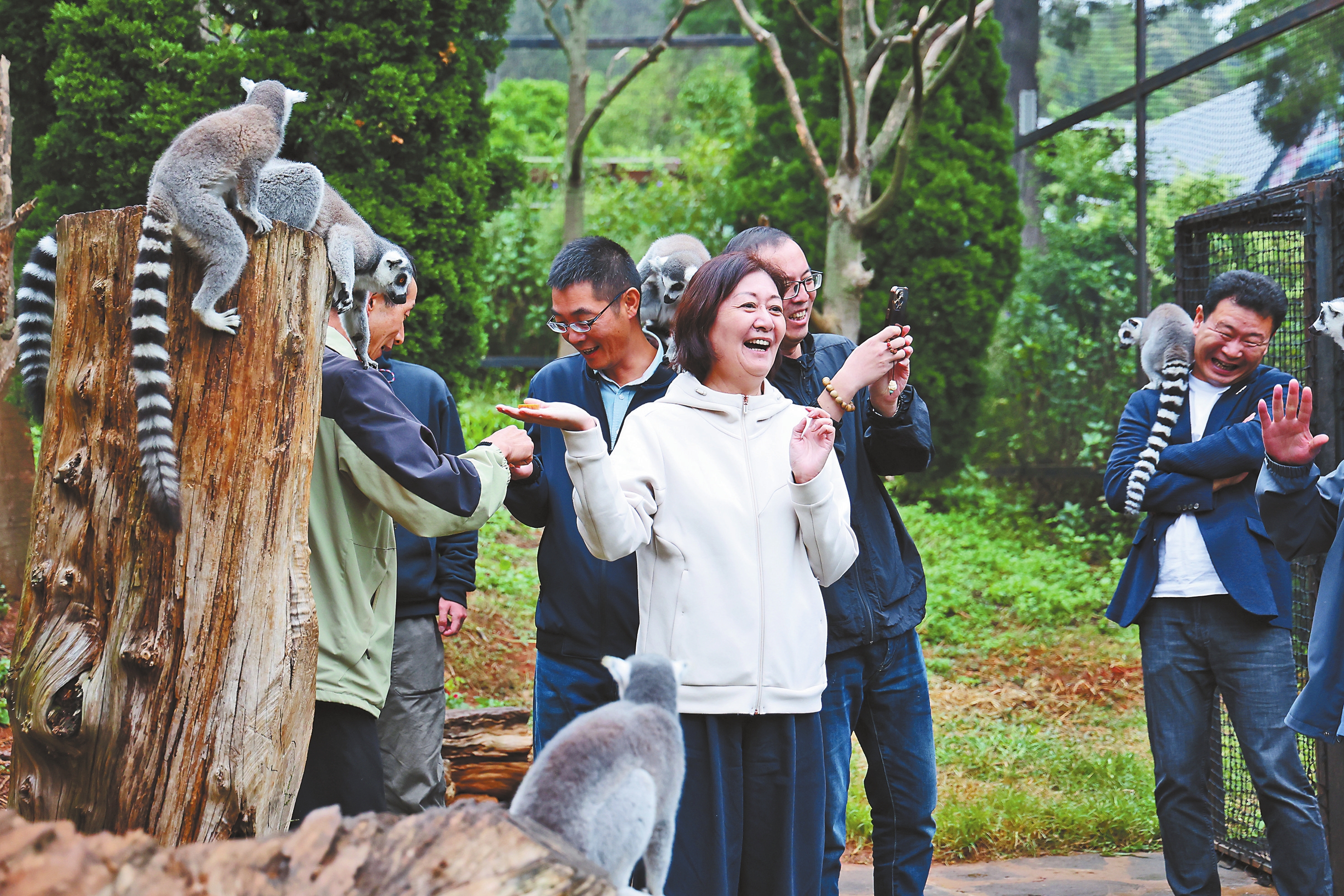 云南野生动物园是云南省招商引资重点项目,是西南地区最大的山地野生动物园,也是云南省第一个以野生动物保护研究、旅游观赏、科普教育为主体的新型旅游景区。参观过程中,代表团对园区模拟原生态景观营造,最大限度打造开放式空间环境,以及托管云南省野生动物收容拯救中心和开展科普研学、职业体验、劳动教育等多种形式的科普活动和社会实践印象深刻。代表团成员在这座由百余种野生动物组成的“动物大世界”里,感受人与自然和谐共生的独特魅力。