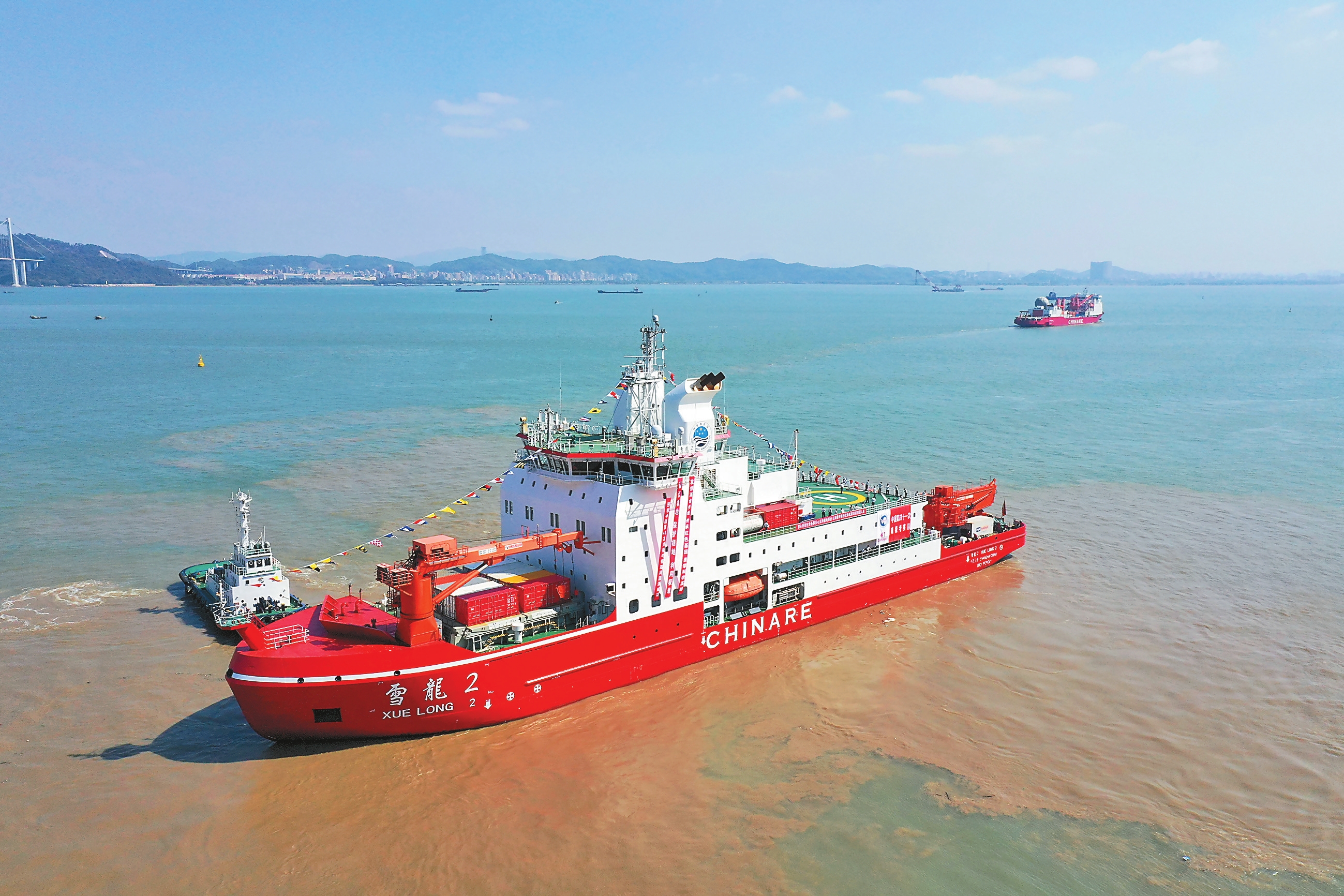 11月1日,“雪龙”号和“雪龙2”号船从广州南沙国际邮轮母港码头出发。当日,由自然资源部组织的中国第41次南极考察队,劈波向南、破浪出征,开启为期近7个月的科考征程。此次考察将开展南极秦岭站配套设施设备建设,围绕气候变化对南极生态系统的影响与反馈开展调查,广泛开展科研和后勤保障领域的国际合作。 新华社记者 黄国保 摄