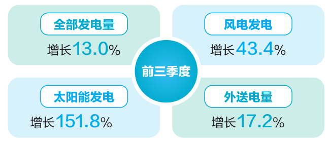 1至9月,全省全部发电量3501.48亿千瓦时,同比增长13.0%,除火电外,水电、风电、太阳能发电均实现不同程度增长。全省全社会用电量2050.00亿千瓦时,同比增长11.8%,其中工业用电量增长15.9%、城乡居民生活用电量下降1.4%。送电方面,全省外送电量1650.48亿千瓦时,增长17.2%,超额完成迎峰度夏期间“西电东送”任务,外送电量突破千亿千瓦时。