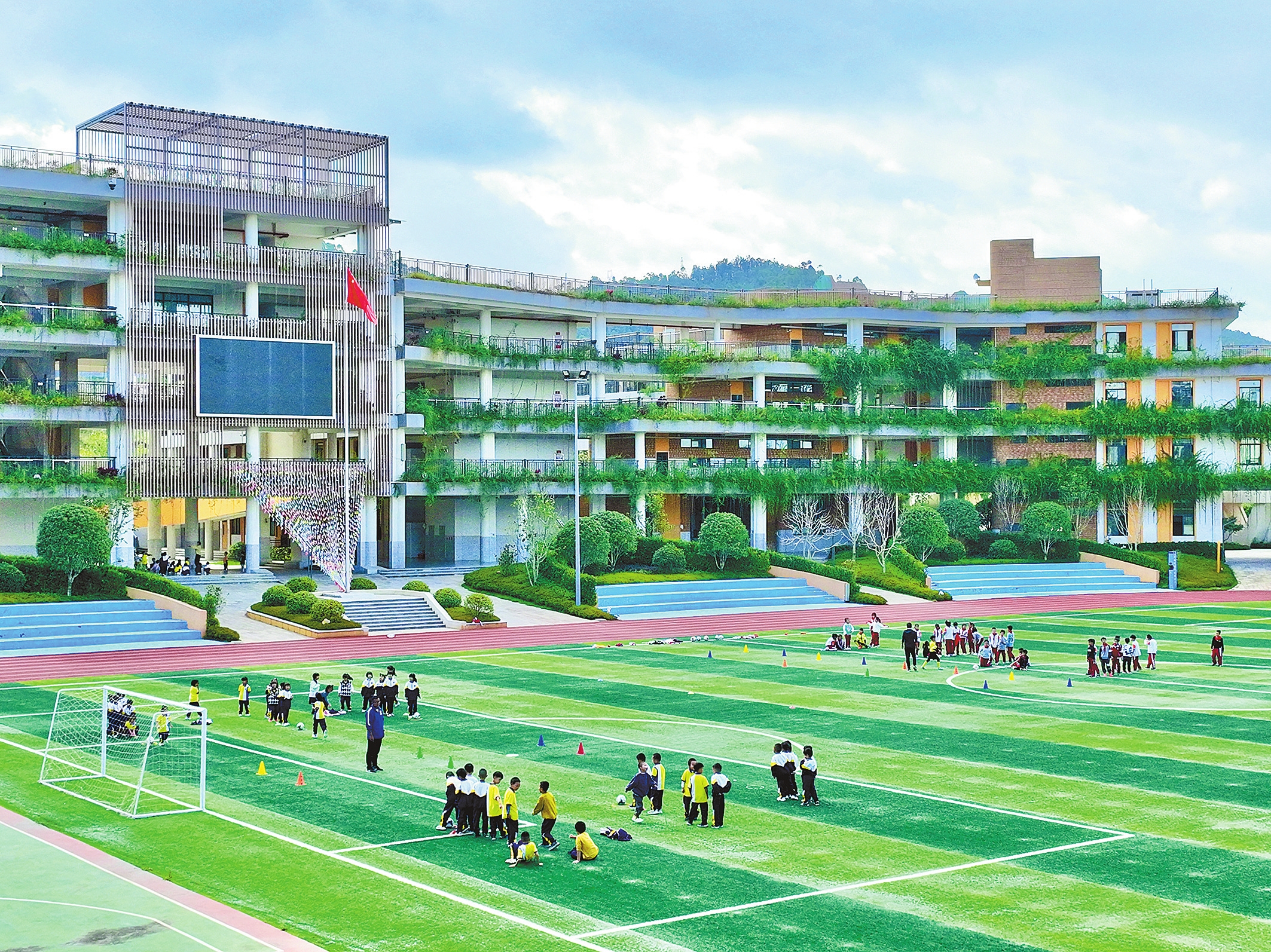 从红塔区中心城区向北驱车10多分钟,便来到位于城郊的玉溪第一小学教育集团溪源校区。崭新的教学楼掩映在绿树花草中,运动场上挥洒汗水的学生充满活力,学校优美的环境和齐全的设施为学生学习提供了良好保障。戍戎介绍:“为了让孩子在家门口就享受到优质教育资源,从校区的规划设计到师资队伍的组建,我们都倾力将一小的优质教育资源充分辐射到这里,并从文化校区选拔了一批优秀的骨干教师带动学校的发展。”
