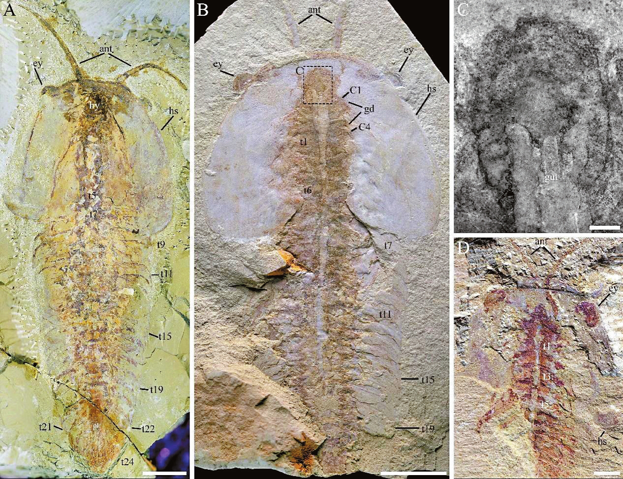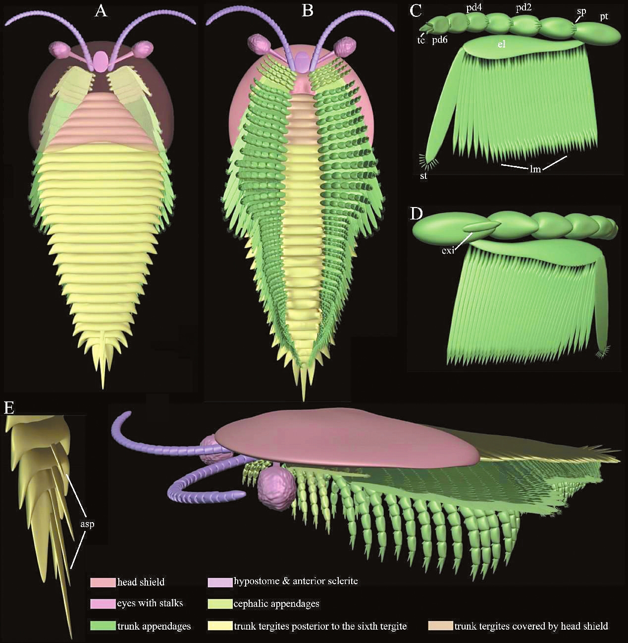 研究发现,奇丽灰姑娘虫具有独特的解剖特征,包括纺锤形的躯干背板,其中,前6个被头甲覆盖,末端4个延伸出轴刺。研究还揭示了这种动物的悬垂式唇板和四对触角后头部附肢。特别值得注意的是,在奇丽灰姑娘虫的躯干背甲与腹部腿肢之间存在一种分节错配现象,且这种错配模式与其他寒武纪节肢动物,如抚仙湖虫、其他海怪虫类、现生多足类动物的错配都有着明显区别,代表了一类新的错配方式。