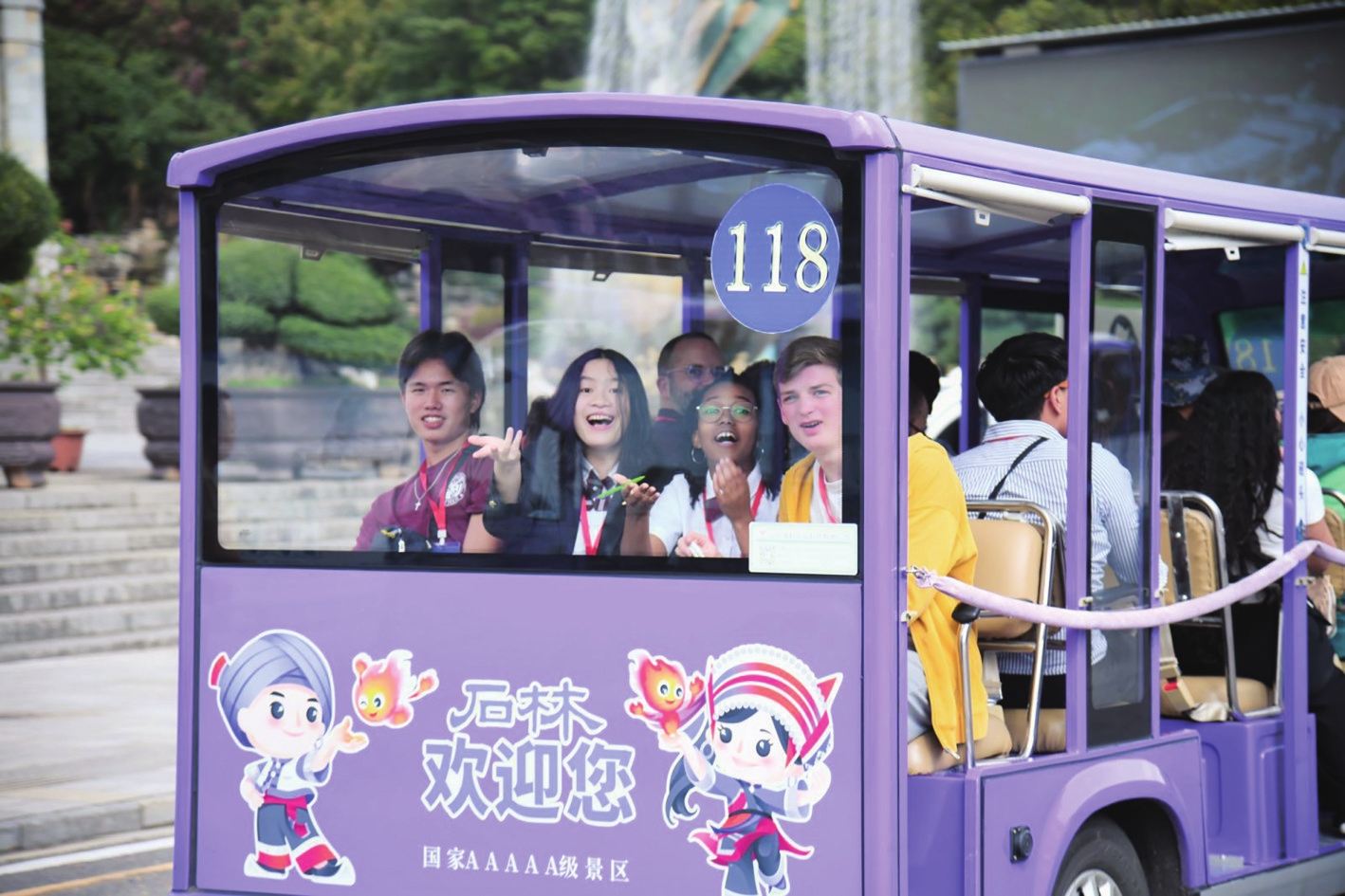 在昆明,青少年们一起游览神奇壮观的石林,与当地少数民族载歌载舞;一起逛热闹美丽的斗南花市,置身花的海洋,体验鲜花拍卖。美国青少年还专程前往昆明飞虎队纪念馆,重温历史;到访“飞虎队友谊学校”——昆明市外国语学校,与同学们热情交流,并共制手工“中国龙”。大家还品尝了气锅鸡、过桥米线、炸洋芋、鲜花饼等昆明地道美食。来自美国丹佛和日本高山的青少年纷纷用现学的方言表示:“昆明真板扎,我们爱昆明。”