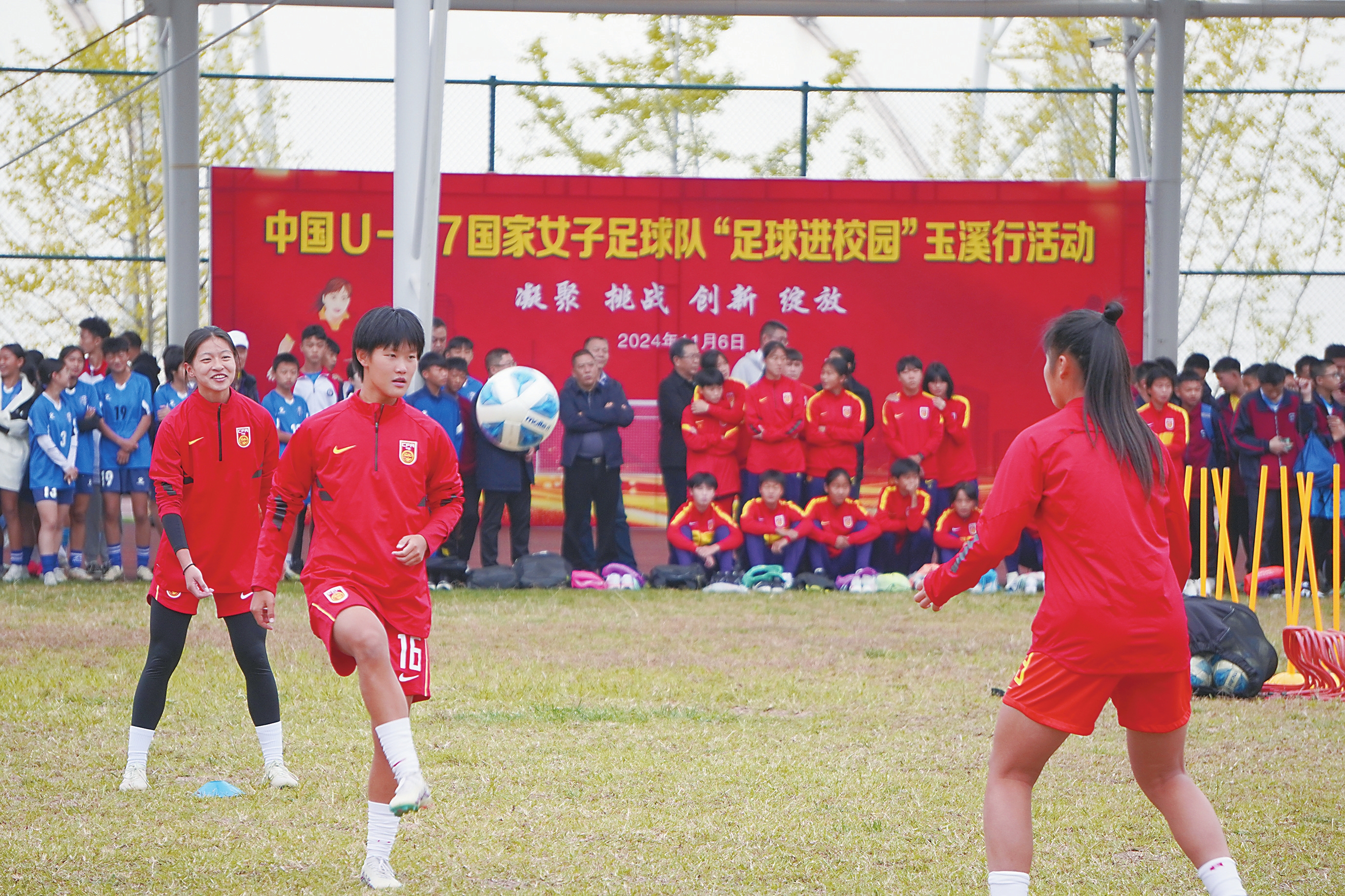 本报讯(记者 王剑钊) 11月6日,正在玉溪市进行集训的U17国家女子足球队走进玉溪体育运动学校,为玉溪校园足球队作技术指导。