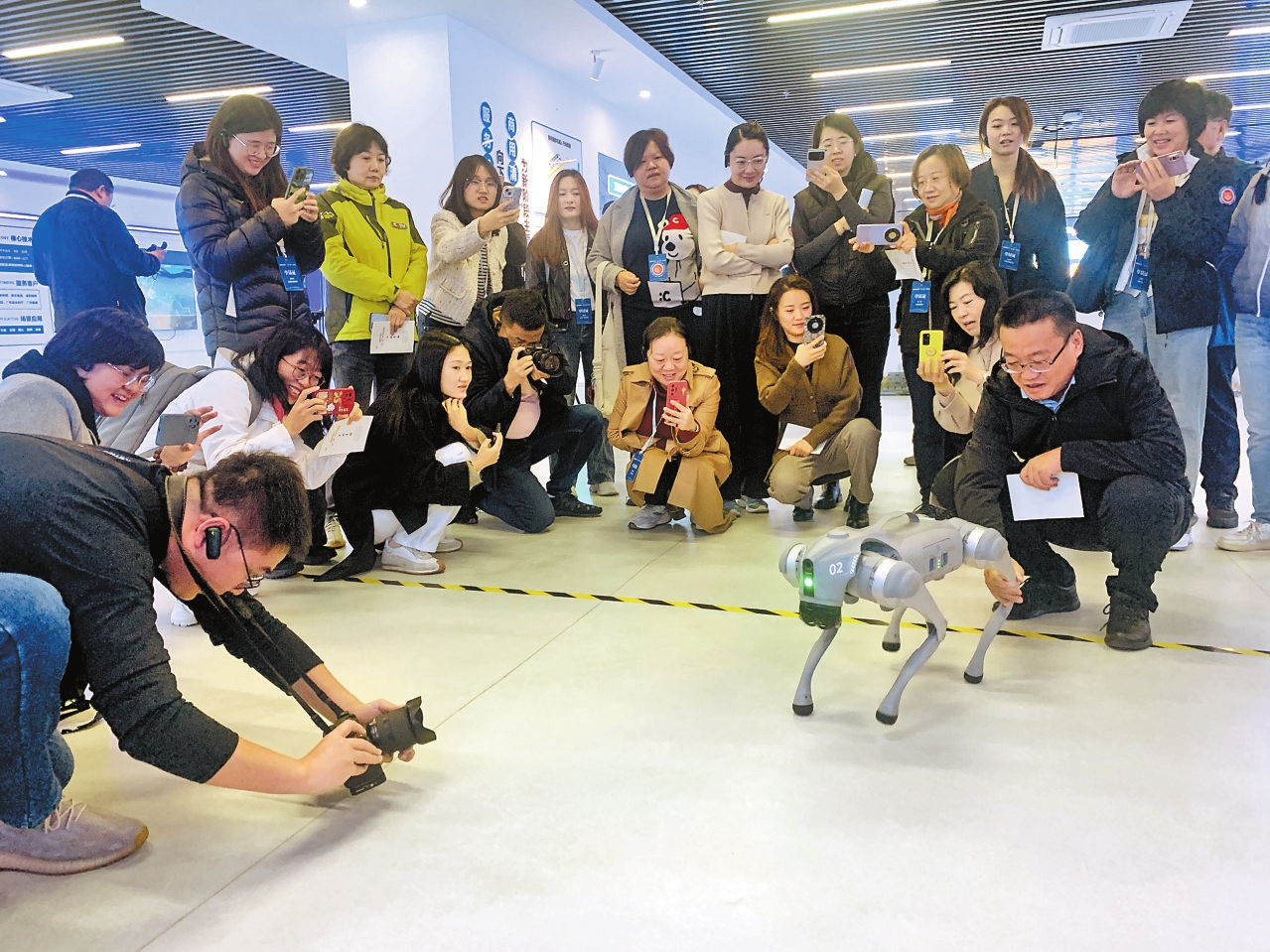 在公司展厅里,媒体记者与企业自主研发生产的各类智能服务机器人热情互动。光学模件生产线车间内,智能生产线全速运转,每道工艺流程都严格按照标准操作,一切井然有序。“我们的产品包含室内外商用清洁、迎宾服务、电力巡检、医疗配送机器人等10多个品类,涵盖各种商业场景的应用,同时应用数字孪生、人工智能、云计算和GIS等尖端技术,为各垂直行业提供技术服务,并持续进行人工智能及无人驾驶等核心技术研发。”公司工作人员介绍,说不定大家平常用到的、看到的机器人,很有可能就出自他们公司。
