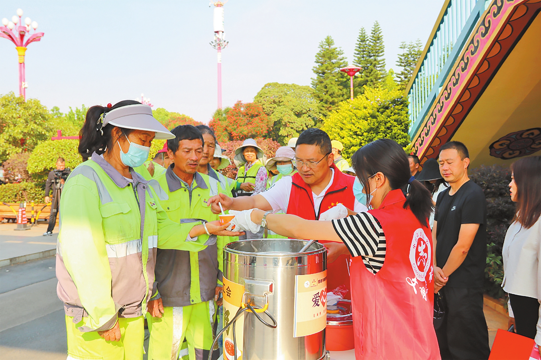 桃源湖公交枢纽站“工会驿站”免费供应爱心粥。