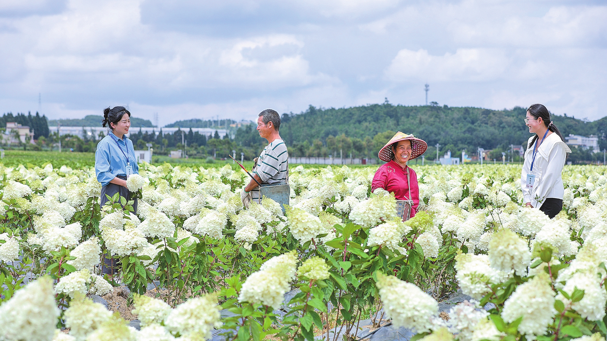 马龙区组织巡察干部下沉一线开展专项巡察,以绣球花等农特产业为切口,着力推动解决惠民惠农政策措施落实中的堵点和群众急难愁盼问题,为乡村振兴保驾护航。图为该区巡察干部近日在通泉街道杨官田社区土瓜冲村绣球花种植基地走访。