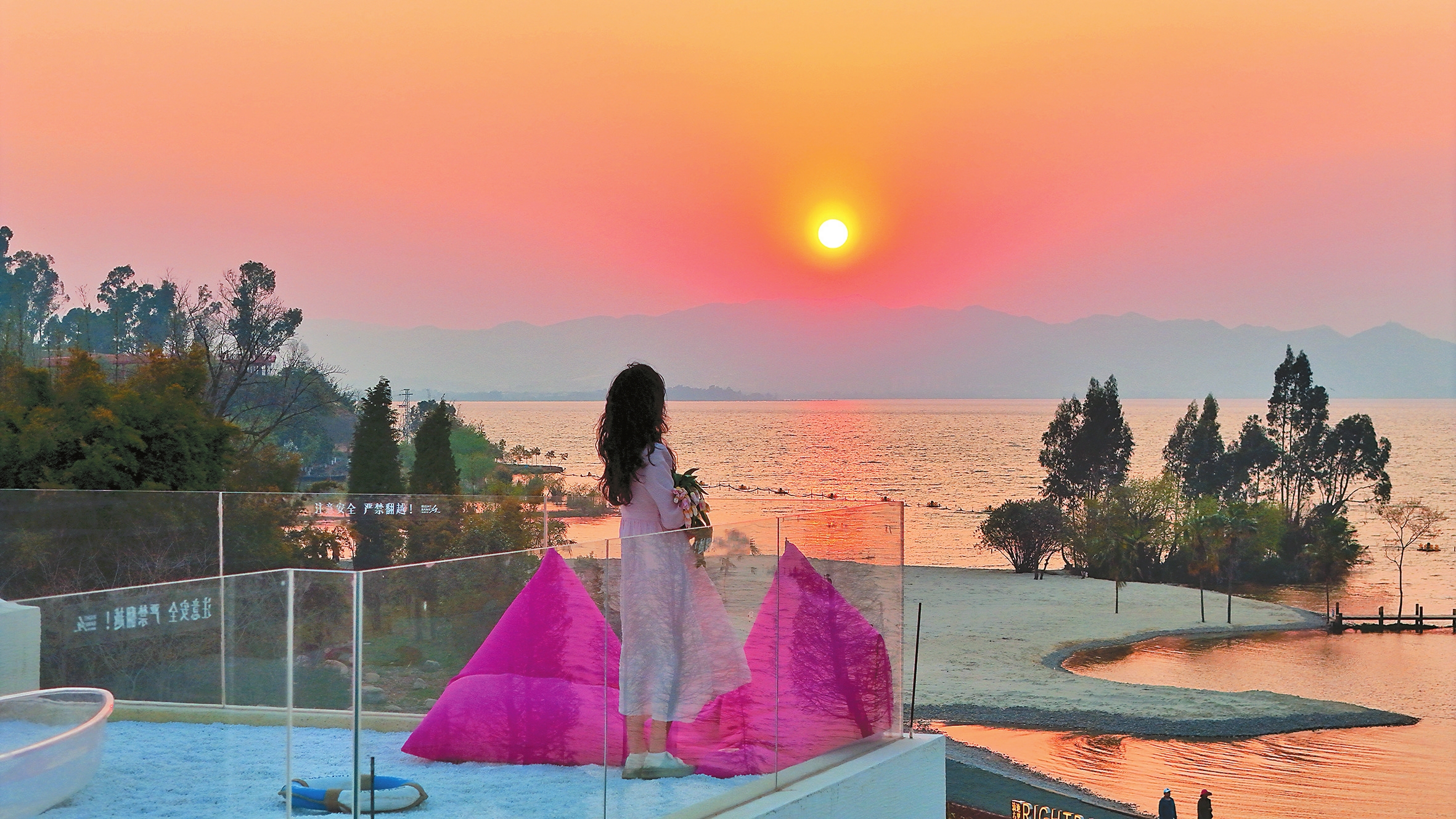 今年春节,紧邻滇池绿道的滇池右里民宿正式开业。来自上海的游客文鑫坐在房间窗前,喝着早茶,沐浴着滇池暖阳,尽情享受春日时光。“清晨,当滇池的第一缕阳光透过巨大的落地窗,便能在滇池的怀抱中醒来,推窗即景的诗意生活在这一刻具象化。”文鑫说,“傍晚,随着太阳落下,天空的色彩不断变化,牛恋的日落充满诗意。”