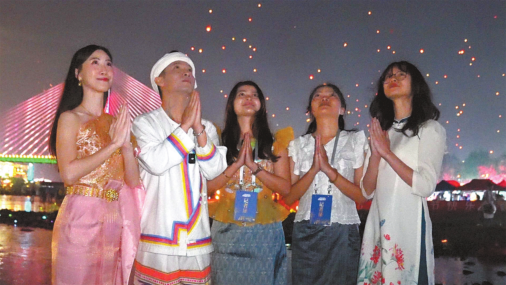 “此刻,我正置身于西双版纳傣族园景区泼水广场的欢乐海洋中。可以看到,我身后的每一个人都完全沉浸在节日的狂欢里。”身着粉色傣族服饰的泰国大众传播机构(MCOT)泰国通讯社记者瓦查理·巴拉颂韦瓦手持话筒在现场报道。