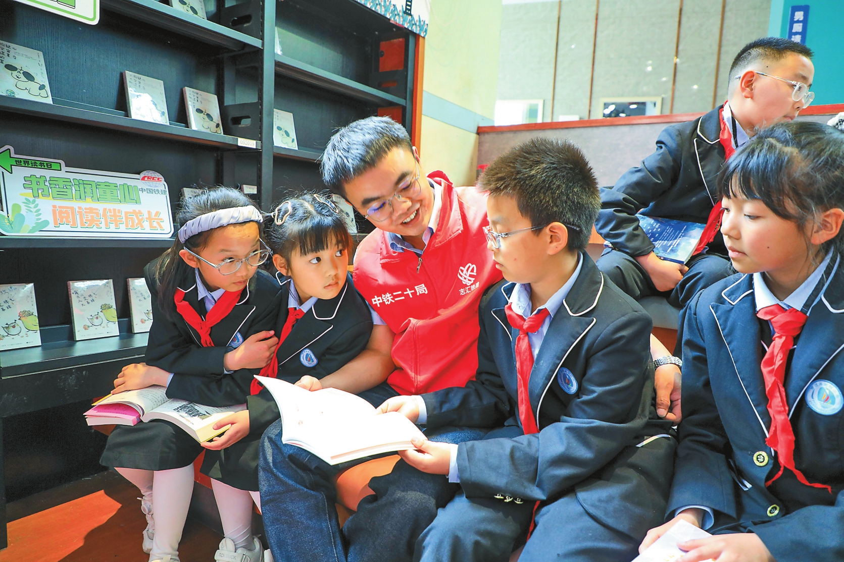 4月21日下午,中铁二十局五公司联合昆明市官渡区关锁小学开展“书香浸润童心 阅读点亮未来”主题读书活动,20余名师生代表与企业志愿者走进昆明新华书店,在书香氤氲中享受阅读快乐。