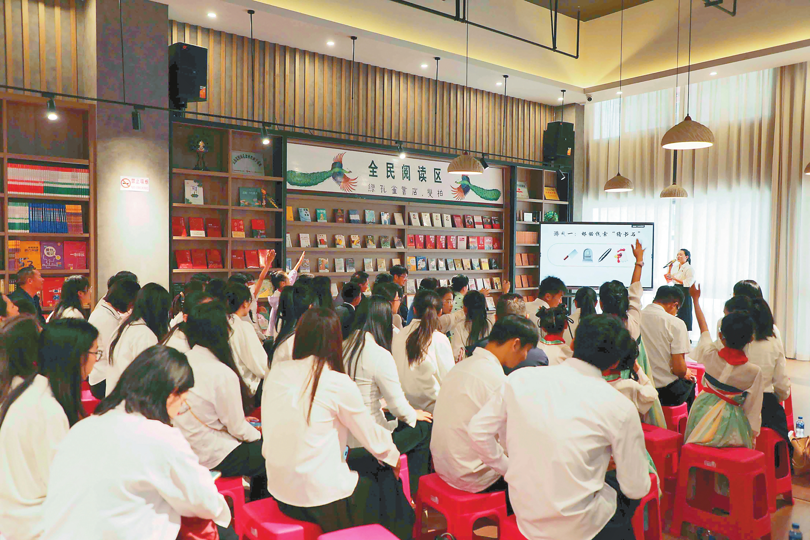 楚雄彝族自治州全民阅读文明实践活动在双柏县绿孔雀主题书店启动,通过多元化的文化实践,在双柏掀起“爱读书、读好书、善读书”的热潮。启动仪式上发起了“每日阅读30分钟”签名倡议,号召市民以行动践行终身学习理念,并表彰了省、州级“好书相伴 快乐成长”读书征文活动优秀组织单位及个人。元谋县开展“书香润家风 亲子共成长”家庭亲子阅读活动,亲子家庭、志愿者爱心妈妈共同观看了《家风文化》微视频,诵读了《花瓣儿鱼》《小马过河》《沁园春·雪》等书目,现场掌声不断。
