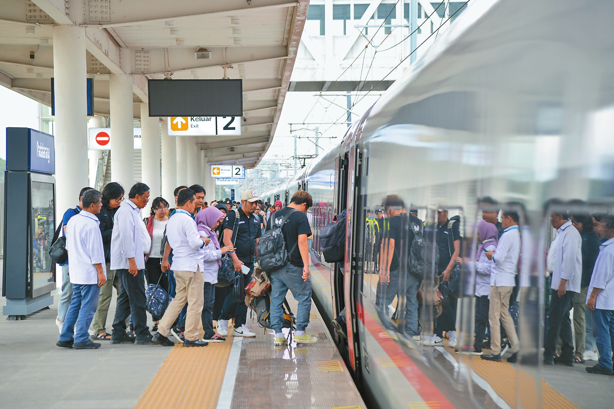 4月24日,在印度尼西亚帕达拉朗,乘客在雅万高铁帕达拉朗站排队乘车。根据印尼中国高速铁路有限公司数据,自2023年10月17日开通运营至本月27日,雅万高铁已累计发送旅客900万人次,累计开行动车组列车26168列,安全运行里程超411万公里。 新华社记者 徐钦 摄