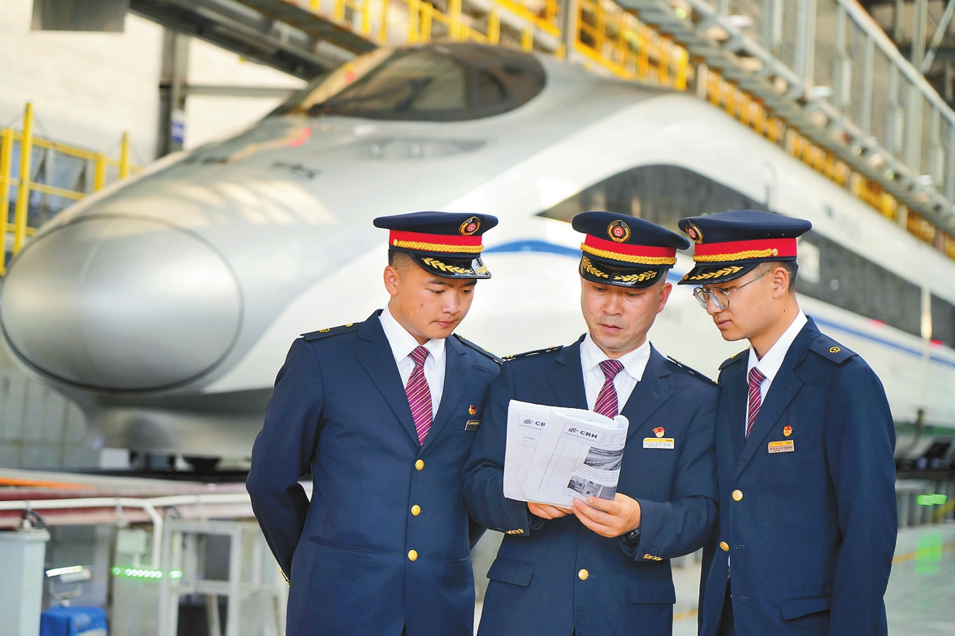 在中国铁路昆明局集团有限公司昆明机务段的模拟驾驶室里,动车组司机胡军手把手指导年轻学员操纵最新型的“复兴号”动车组模拟器。从制动手柄的45°回旋角度到紧急制动阀的0.3秒触发阈值,一批批动车司机在这里学习到胡军“毫米级”的精准操作,驾驶高铁驰骋在崇山峻岭间。这名从业30年的老司机,不仅见证了云南铁路从普速列车到高铁的跨越,更用自己的双手和经验助力这一历史进程,成为钢轨上的“追风者”。