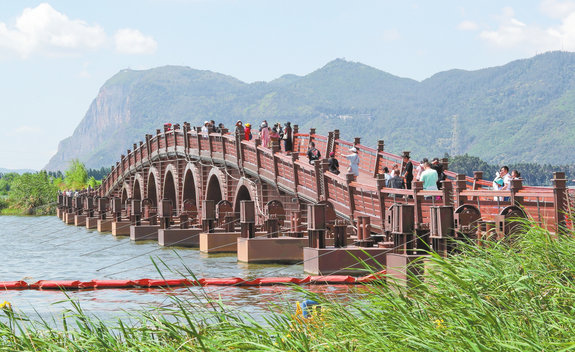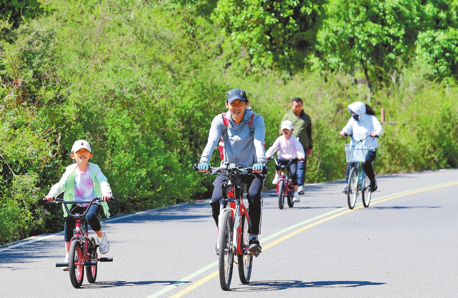 “五一”假期,昆明滇池绿道沿线风景宜人,处处生机勃勃,市民游客骑行健身、赏花观景、亲近自然,沉浸于“人在画中游”的诗意氛围。为满足假日游客需求,绿道沿线增设了多处共享单车租赁点,更新了休憩座椅,为游客打造假日休闲的生态空间和城市“绿色会客厅”。本报记者 杨峥 摄