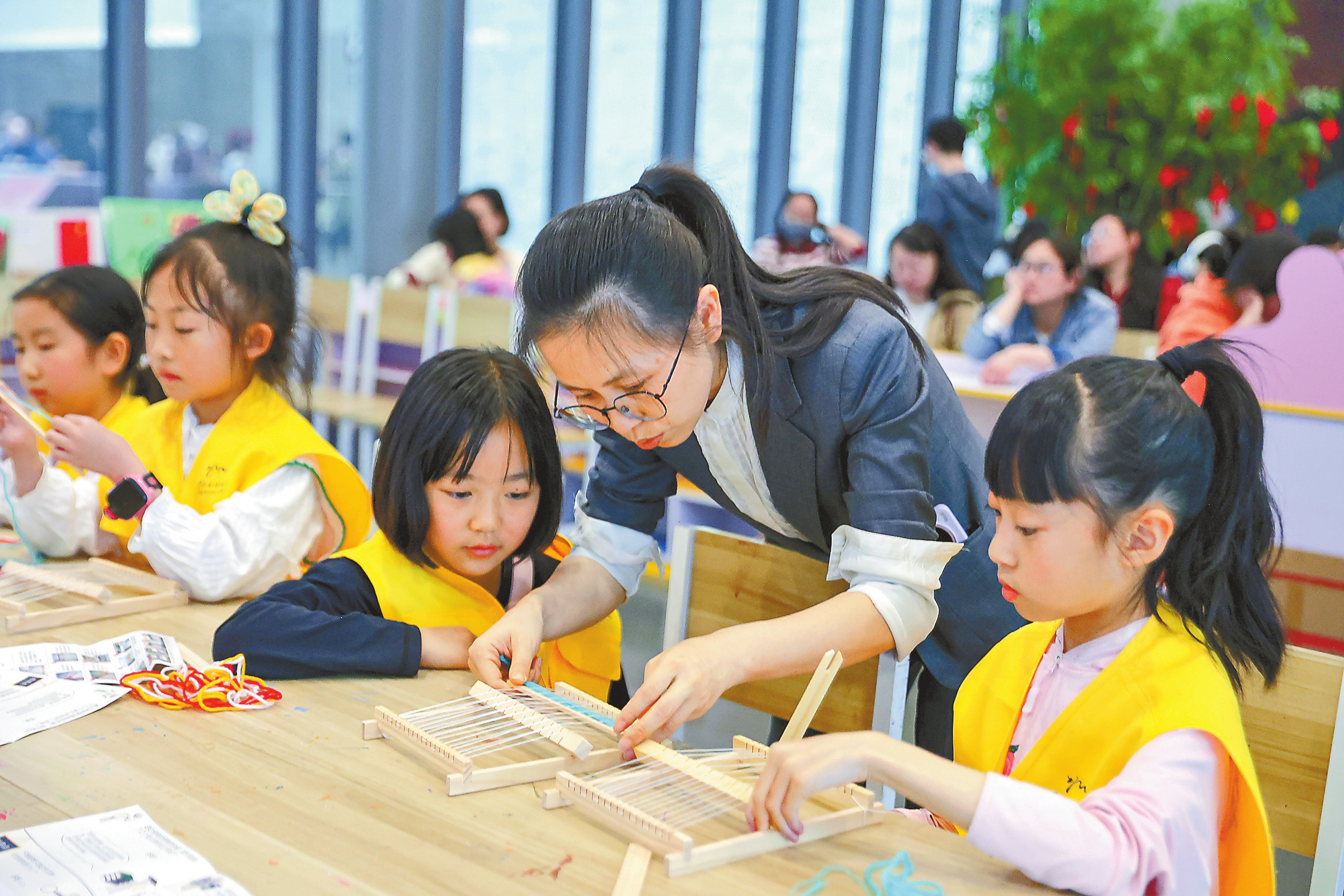 连日来,众多市民游客来到云南省博物馆,感受云南的历史文化魅力。除了常设展览和特色临展外,云南省博物馆还推出了纺织体验、瓦猫体验等公益研学活动,并延长开放时间,让观众在轻松愉悦的氛围中享受“文化假期”。图为孩子们参加纺织体验活动。本报记者 胡妤雅 摄