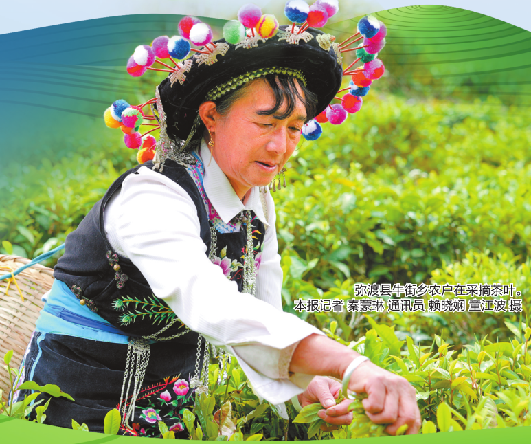 弥渡县牛街乡农户在采摘茶叶。 本报记者 秦蒙琳 通讯员 赖晓娴 童江波 摄