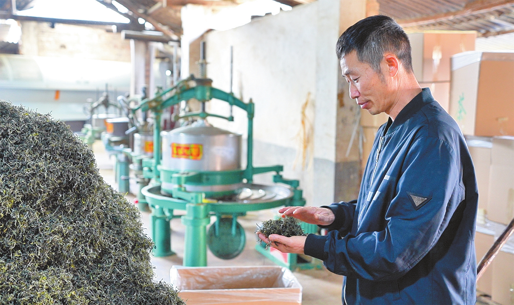 在不远处的龙堡小组村民杨启兰家的茶园里,同样是一片忙碌的劳作场景。杨启兰一家穿梭在茶垄间,动作娴熟地采摘着鲜嫩的茶芽。“承包了10亩茶园,光茶叶一项一年就增收3万多元,在家还可以兼顾其他农作物种植,照顾上学的孩子,一举多得。”杨启兰说。