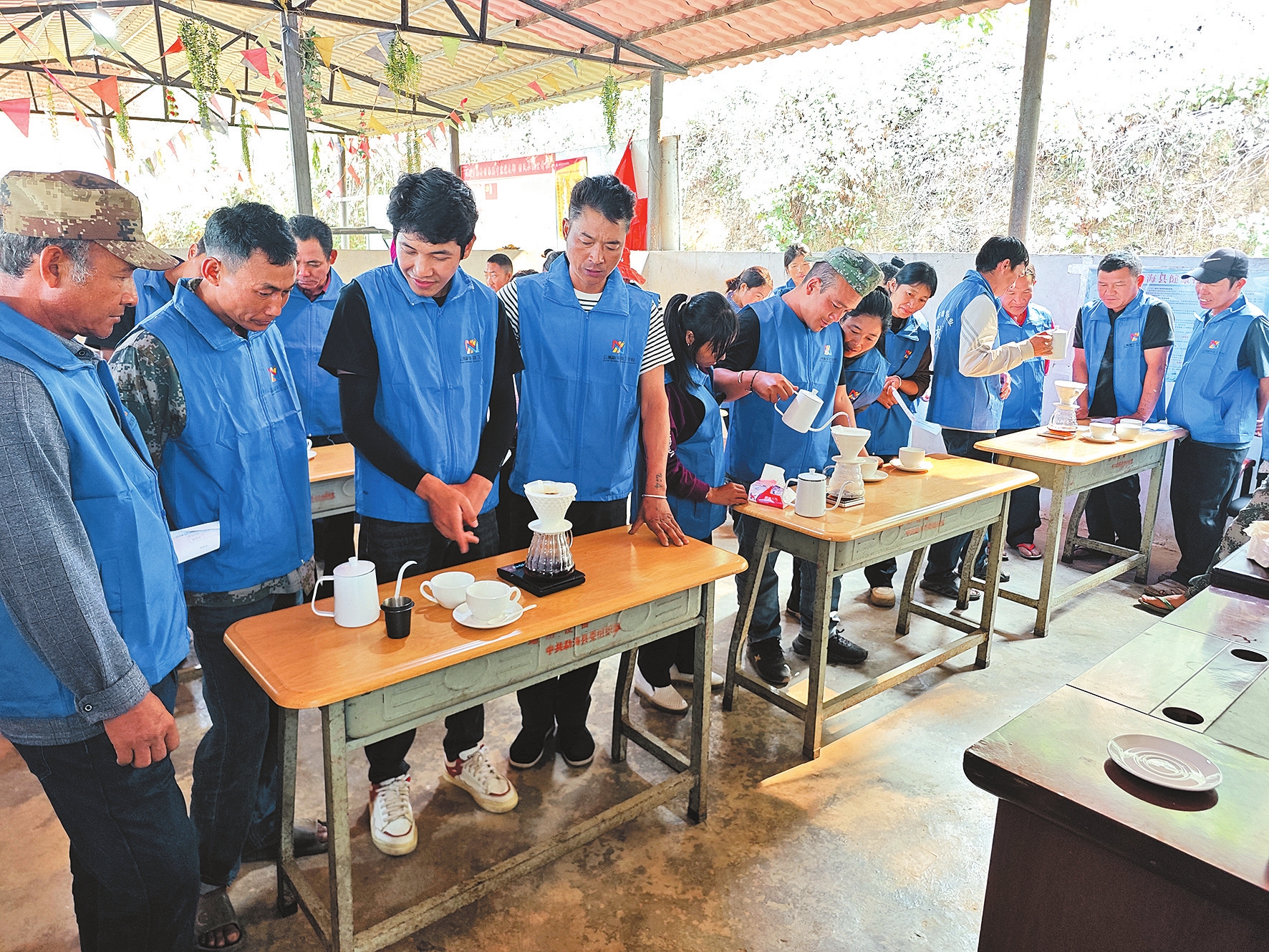 西定乡引进云乐咖啡有限公司,免费为农户提供优质种苗,供应生物农药、有机肥,并聘请咖啡种植知名专家全程技术指导。党员干部带头,带动群众种植咖啡1.4万亩。同时,积极构建“企业+合作社+农户”的双绑利益联结模式,实现资源共享、风险共担,不断提升咖啡产业附加值。
