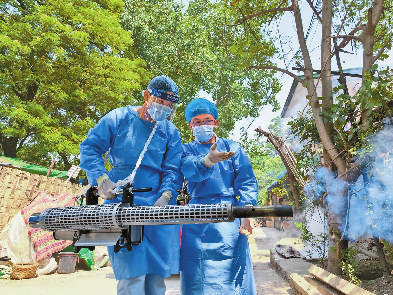 除了喷洒消杀,队员们还指导缅方工作人员开展环境综合治理,疏通沟渠、清理积水,并普及蚊虫防控知识。